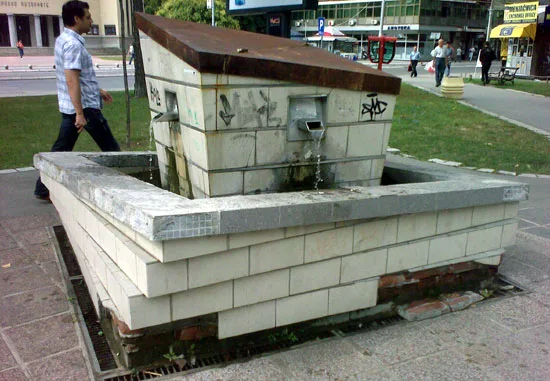U parku preko puta Suda, preko puta Narodnog pozorišta i ispred Dečije biblioteke, nalazi se jedna, nazovimo česma. Da li neko zaista prima platu da bi ta, nazovimo česma, tako izgledala?