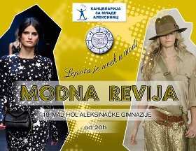 Modna revija pod nazivom „Lepota je uvek u modi“ biće predstavljena aleksinačkoj publici u četvrtak, 19. maja u holu Aleksinačke gimnazije.