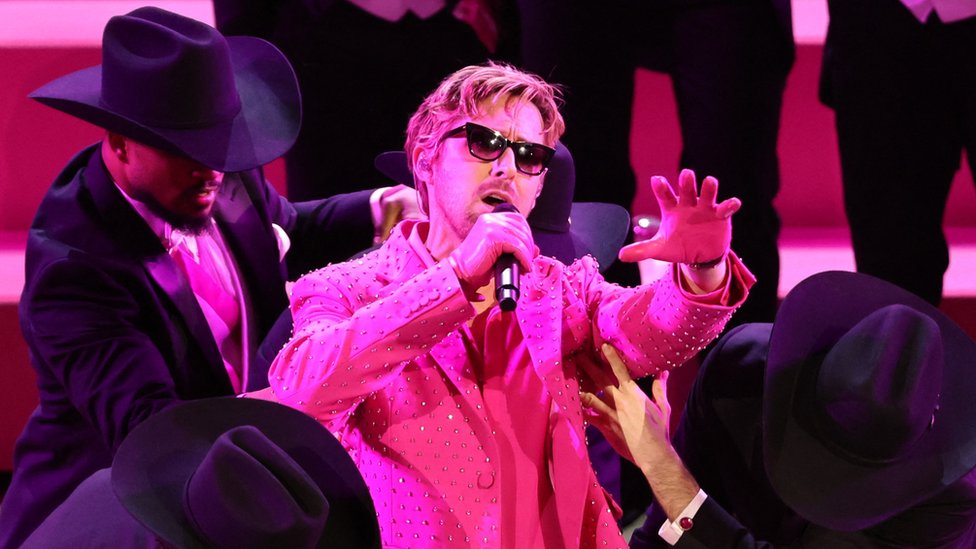 Gosling je pozivao kolege iz prvih redova da mu se pridruže u nastupu, među kojima su bili Ema Stoun i rediteljka filma Barbi Greta Gerving.