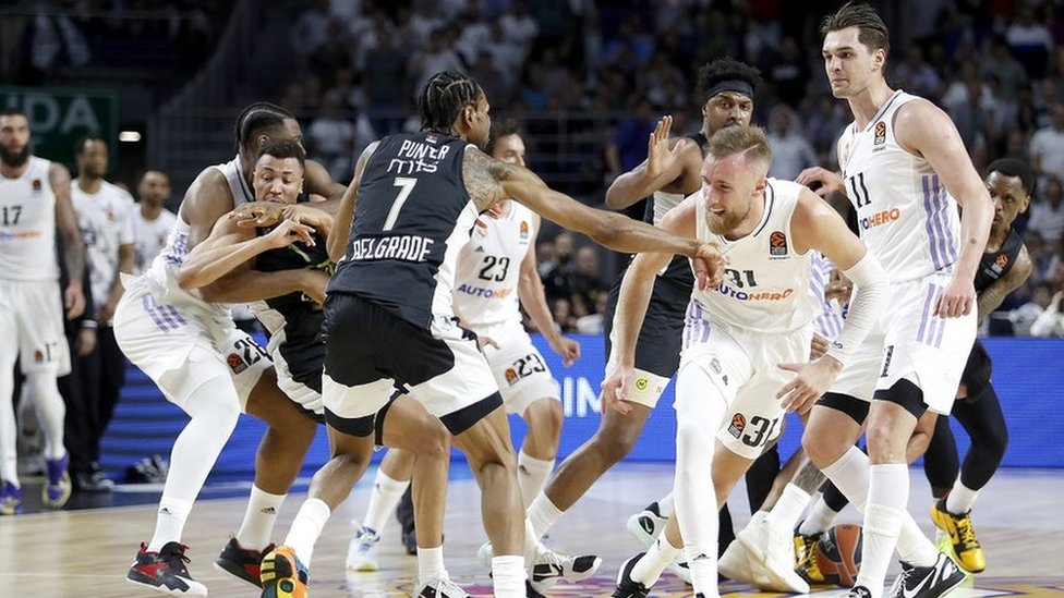 Drugi meč četvrtfinalne serije u Madridu obeležila je odlična igra Partizana, ali i opšta tuča na terenu minut i 40 sekundi pre kraja.