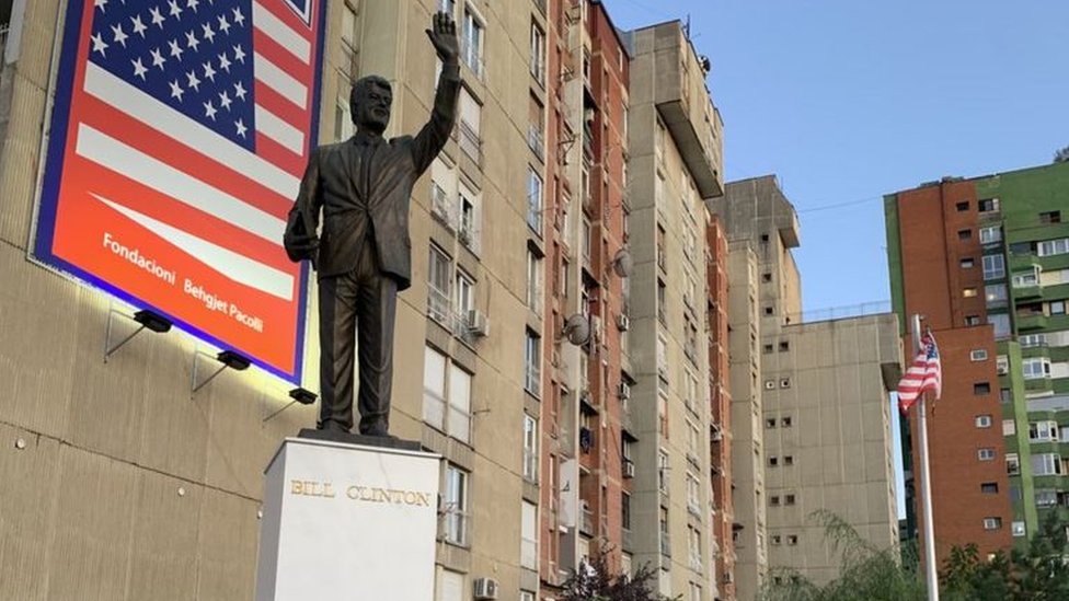 Spomenik bivšem američkom predsedniku Bilu Klintonu u znak zahvalnosti za NATO bombardovanje 1999. godine nalazi se u centru Prištine. Na dokumentu koji drži u ruci ispisan je datum 24. mart – kada je bombardovanje počelo.