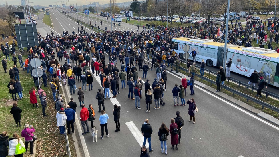 Nekoliko stotina demonstranata blokiralo je duže od sata međunarodni auto-put u Beogradu, dan pošto su vlasti u Srbiji su pod pritiskom ekoloških protesta prethodna dva vikenda povukle Zakon o eksproprijaciji i po hitnom postupku izmenile Zakon o referendumu.