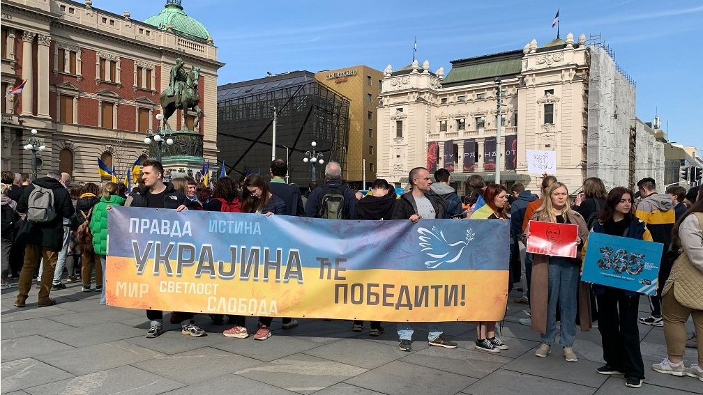 Prisutni su istakli da je istovremeno bilo dozvoljeno okupljanje onih koji podržavaju Ukrajinu.