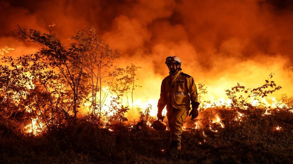 Stanovnici koji su morali da budu evakuisani rekli su za BBC da je u požaru uništeno osam domova i verovatno lokalna crkva, dok je vatrogasac na licu mesta situaciju opisao kao „apsolutni pakao“.