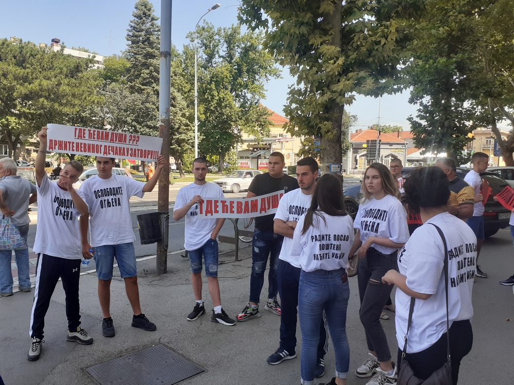 Pošto je 18-godišnjaku iz Aleksinca osumnjučenom da je polovinom maja u tuči teško povredio 25-godišnjeg mladića, koji je nakon toga preminuo, produžen pritvor na još 30 dana, danas su se ispred niške Palate pravde treću nedelju zaredom okupili njegova porodica, prijatelji i školski drugovi, ponovo sa zahtevom da se optuženi brani sa slobode.
