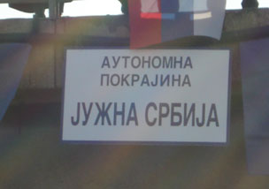 Tablu sa natpisom „Autonomna pokrajina Južna Srbija“, na nadvožnjaku na ulazu u grad kod Jugopetrola postavili su članovi Pokreta niška regija.