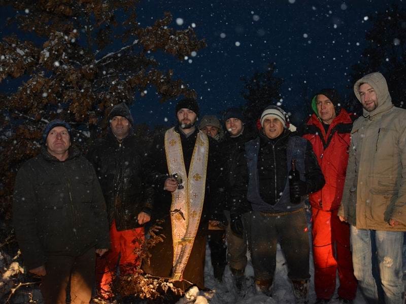 Ovogodišnji domaćini badnjaka Slaviša Vučković i Zvonko Aksentijević su u cik zore, sa predstavnicima lokalne samouprave i sveštenicima posekli badnje drvo.