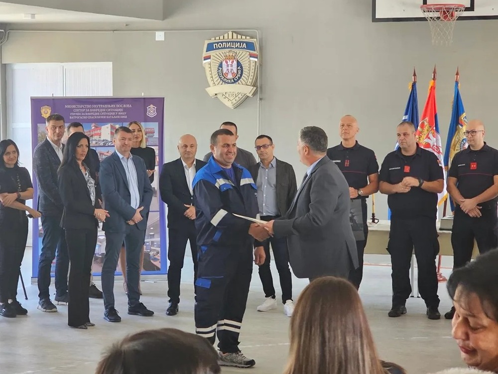 Radniku niškog Vodovoda je priznanje uručio pomoćnik ministra unutrašnjih poslova i načelnik Sektora za vanredne situacije Luka Čaušić, povodom obeležavanja dana tog Sektora.