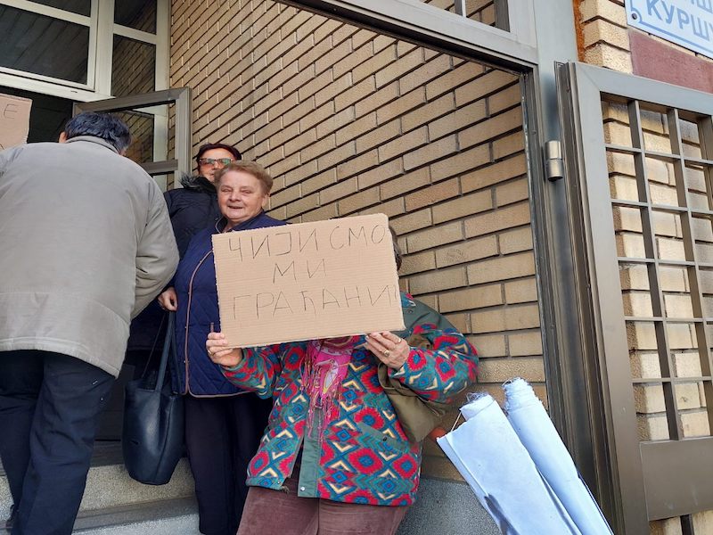 Oni zabranjuju ljudima koji su ovu zgradu nekada gradili i renovirali, da uđu i da na dostojanstven način pokušamo da dođemo do rešenja. Nisu nas pustili da uđemo i ljudi su blokirali ulaz. Pitam nadležne šta će se desiti ako neko od ovih ljudi nastrada, radi se o bolesnim i starim osobama koje ne traže ništa ni više, ni manje do svog zarađenog novca koji im država duguje desetak i više godina unazad. Ostajemo ovde do daljnjeg, a šta će biti videćemo – kaže Krstić.