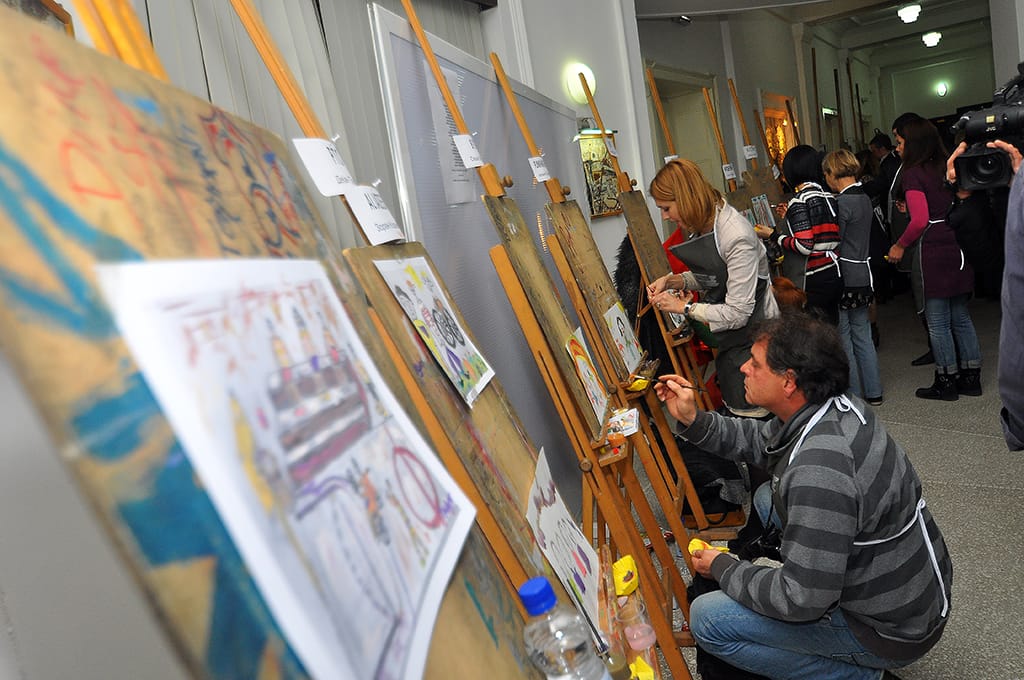 Kako kaže organizatorka ovog događaja Dragana Rodić, deca iz škole „14. oktobar“ imala su zadatak da nacrtaju ono što ih čini srećnima, a novinari da to oboje.