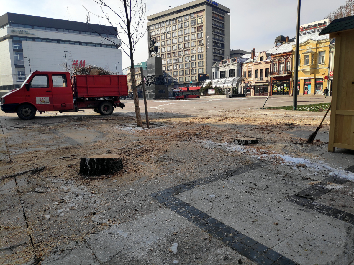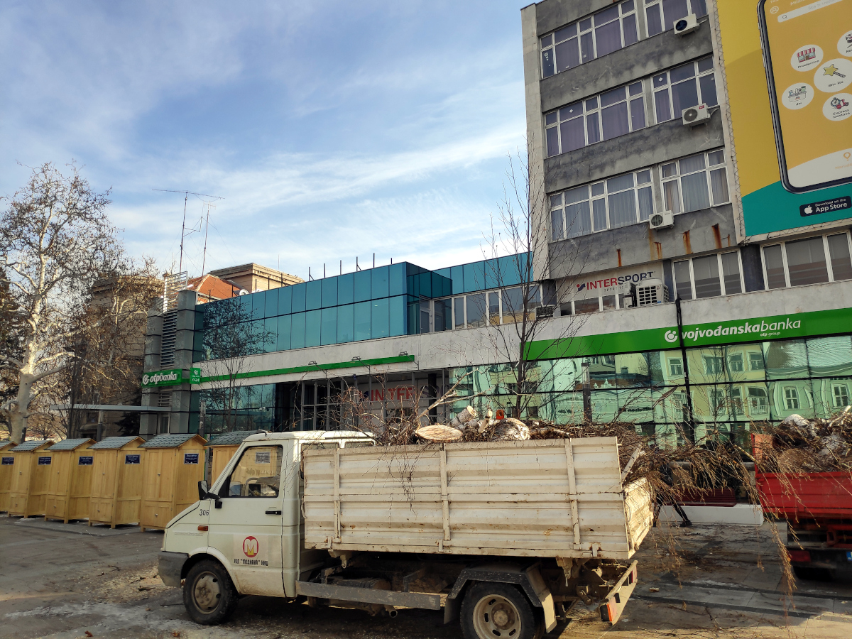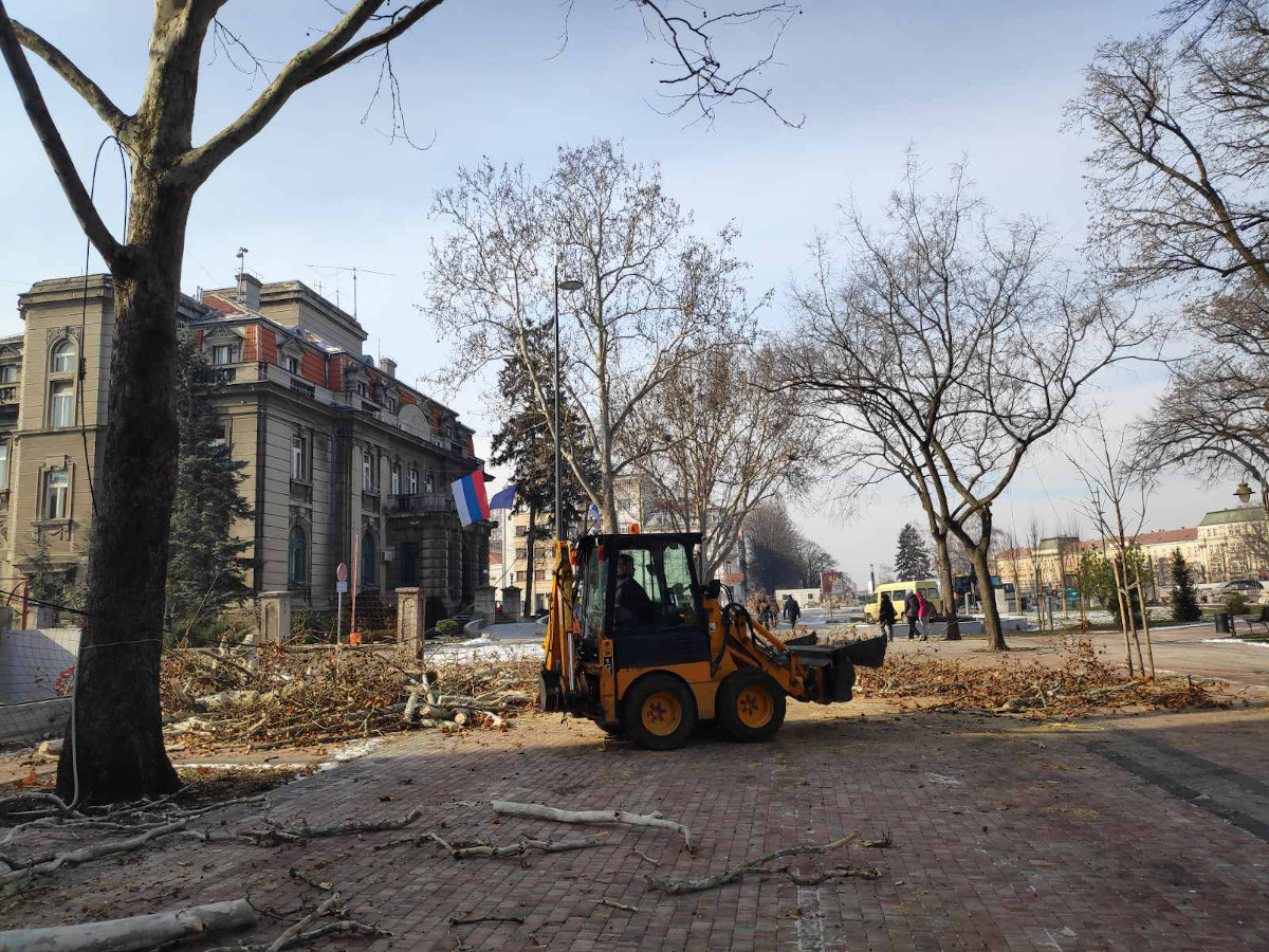 Rano jutros su radnici JKP Mediana počeli seču više stabala na Trgu kralja Milana, a mnogo Nišlija je burno reagovalo, posebno na društvenim mrežama gde većina kritikuje seču i kako su je nazvali – betonizaciju jednog od najzagađenijih gradova.