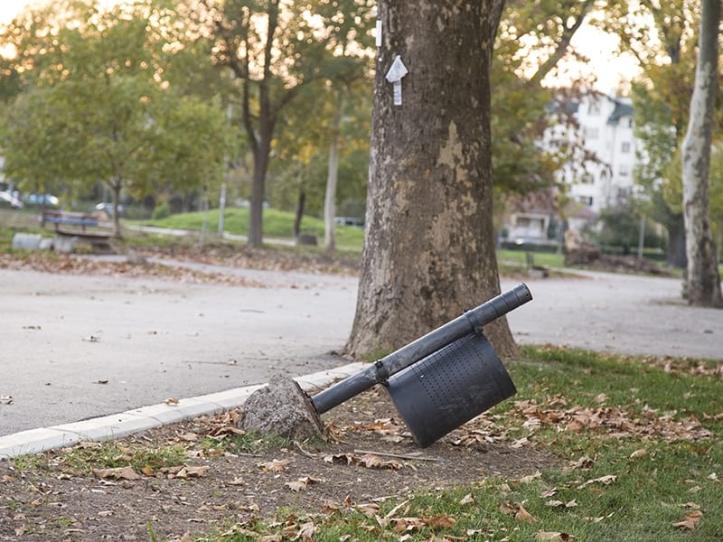 Ova naša olmadina, naša „budućnost“ noću ne samo da lomi klupe i kante za smeće,već i mladim stablima ne da mogućnost da poraste. Sramota je videti kako se iživljavaju na nedužinm stablima. Sramota.