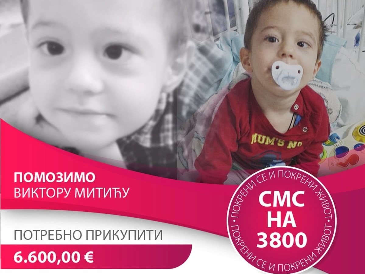 Još kao bebi, a sada četvorogodišnjem Viktoru Mitiću iz Leskovca dijagnostikovane su epilepsija i hemipareza, kao i problem sa želucem. Za njegovo lečenje, kako navode iz Fondacije „Pokreni život“ neophodna je novčana pomoć, kako bi Viktor dobio svoju terapiju i išao redovno rehabilitacije.