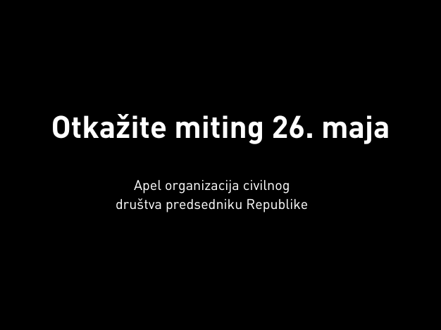 Svesni opasnosti u koju vodi podgrevanje tenzija i dalja polarizacija društva koje se suočava s posledicama nasilja, Centar za istraživanje, transparentnost i odgovornost ispred civilnih organizacija apelovao je na predsednika Srbije i prvog čoveka SNS-a Aleksandra Vučića da postupi odgovorno, razumno i u najboljem interesu najvećeg broja građana, te da otkaže masovno okupljanje najavljeno za 26. maj.
