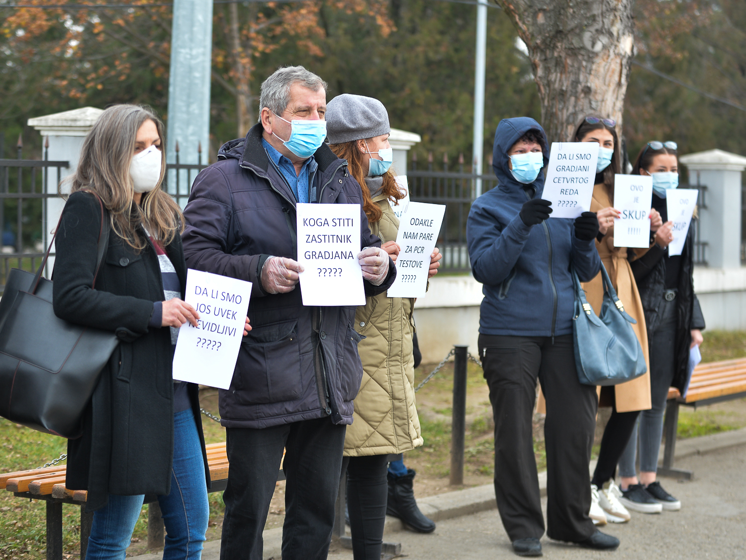 Ispred niškog KPZ-a oko 12 časova počelo je okupljanje članova porodica zatvorenika. Nosili su transparente na kojima pozivaju i zaštitnika građana da se uključi, pitaju da li su nevidljivi i odakle im novac za PCR testove.