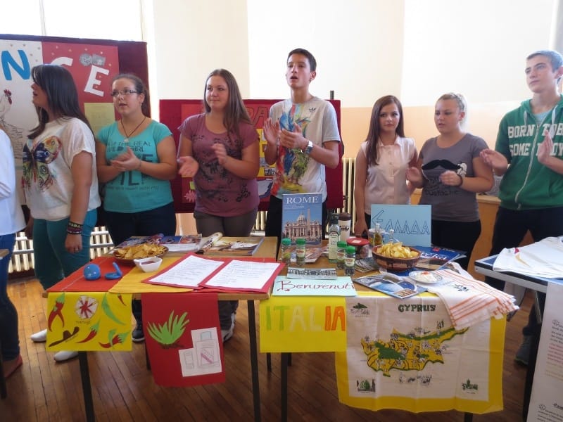 Đaci koji su predstavljali italijanski pozdravljali su posetioce uz „Benvenuti“, a „Grci“ su govorili o turističkim mestima, nacionalnom piću „uzo“ i Delfima.