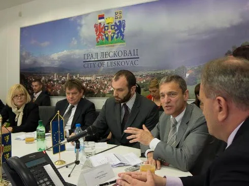 Šef delegacije Evrospke unije u Srbiji Vensan Dežer i gradonačelnik Leskovca Goran Cvetanović otvorili su u Leskovcu Jedinstveni šalter za podršku biznisu i izdavanje građevinskih dozvola.