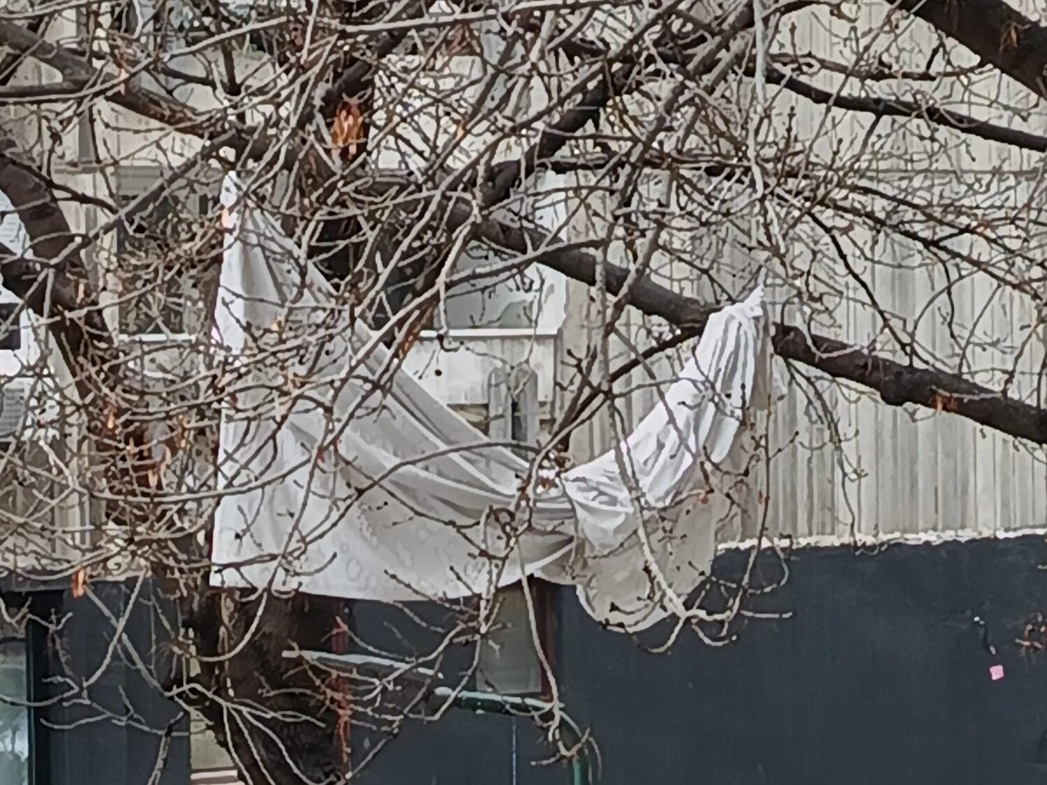 Prizor koji već nekoliko dana stanari ulice Vojvode Tankosića, iza niškog Doma zdravlja, gledaju iz toplih stanova je beli čaršav koji se vijori između zgrada.Usled jakog vetra nekome je „pobegao“ čaršav sa terase. Zakačio se za drvo i tu stoji danima. Visoko je i ne može se dohvatiti bez velikih merdevina ili dizalice sa korpom – javljaju građani.