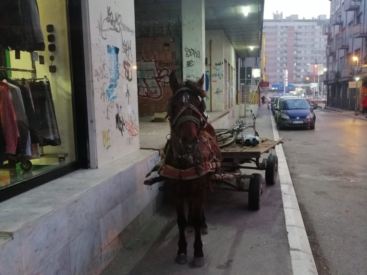 Ne samo konji sa zapregom,nego i bahato parkiranje skupih auta,po trotoarima,parkovima,keju,ulaza u zgradu,tada policija žmuri!