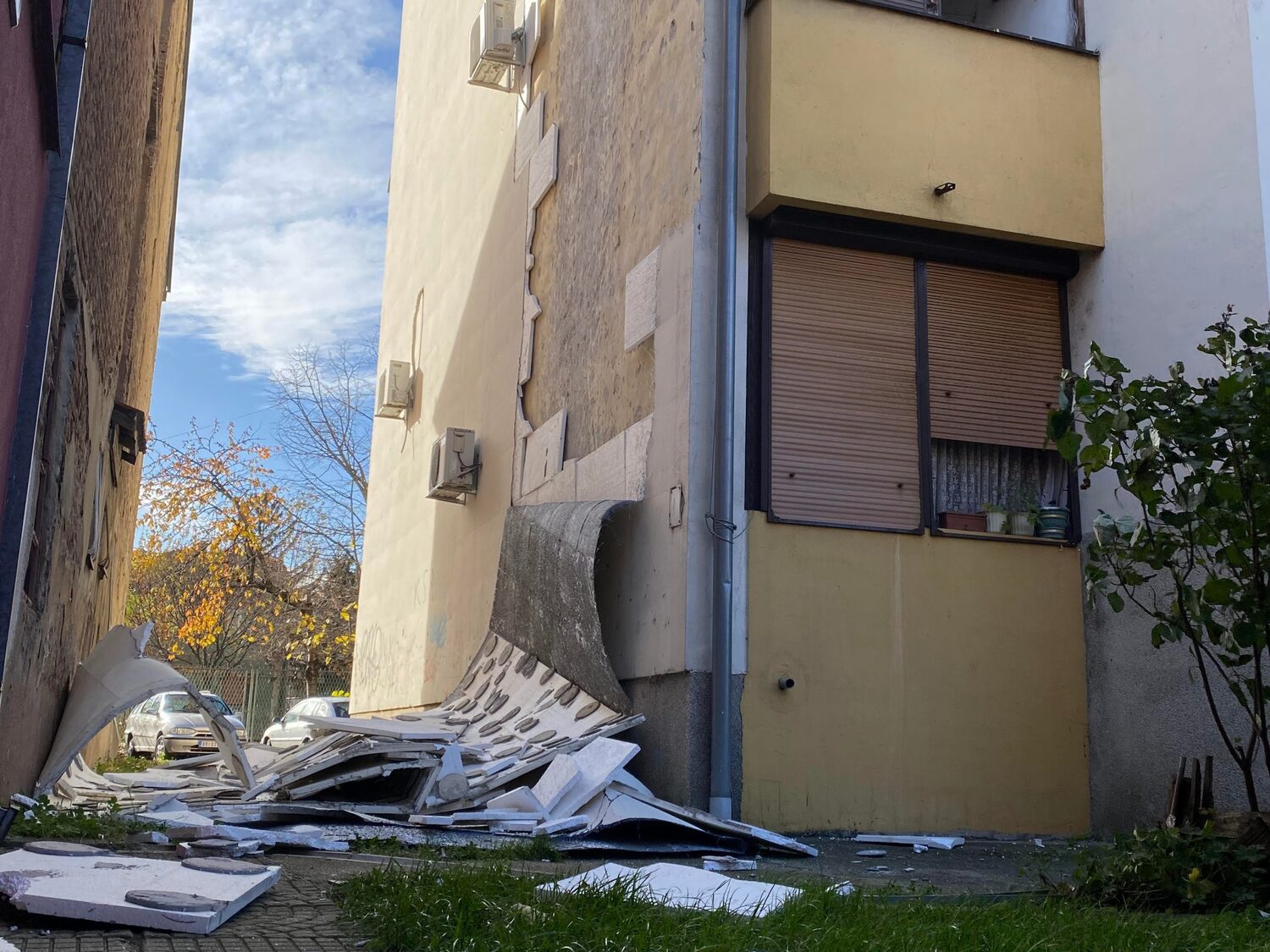 Delovi stiropora, kao i slojevi lepka, mrežice za armiranje i završni sloj, završili su na delu između dve zgrade, a za sada nije poznato zbog čega se taj sloj odvojio i pao.