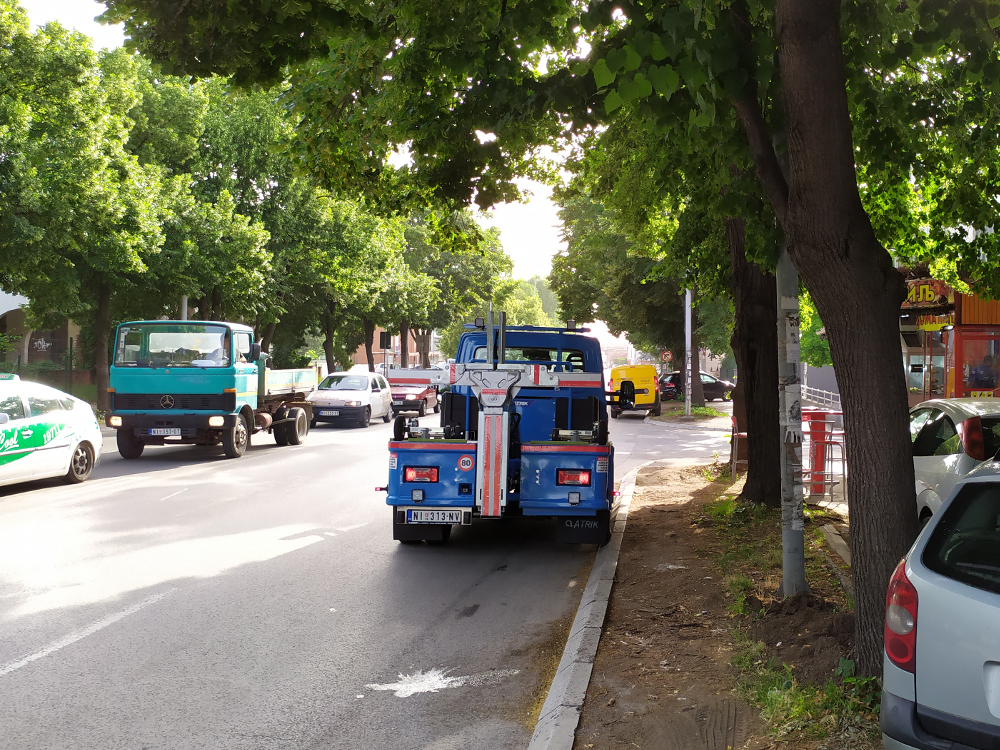Vozilo koje odnosi nepropisno parkirane automobile i samo je nepropisno parkirano, pokazuje fotografija koju je zabeležio građanin kod OŠ “Njegoš” u Knjaževačkoj ulici.