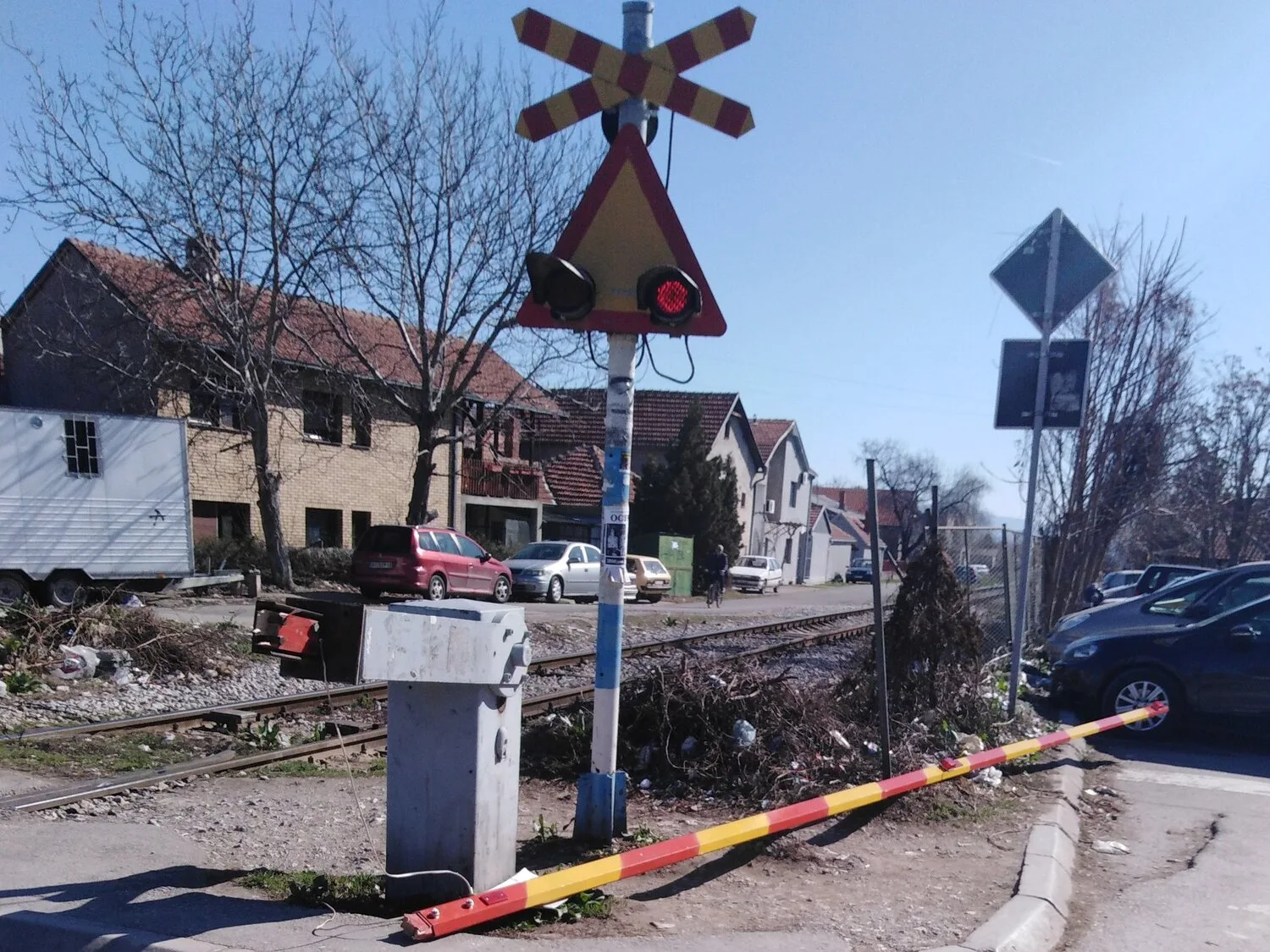Zagledajte dobro sliku. Zamislite da idete iz pravca Delijskog visa a to je iz pravca onih automobila. Svetlosna signalizacija je okrenuta za 180 stepeni POGRESNO. Iz tog pravca do pruge ne vidi se nista. Signalizacija je preko puta prometne ulice. Kada prelazi malo vece vozilo ono zaklanja signalizaciju.