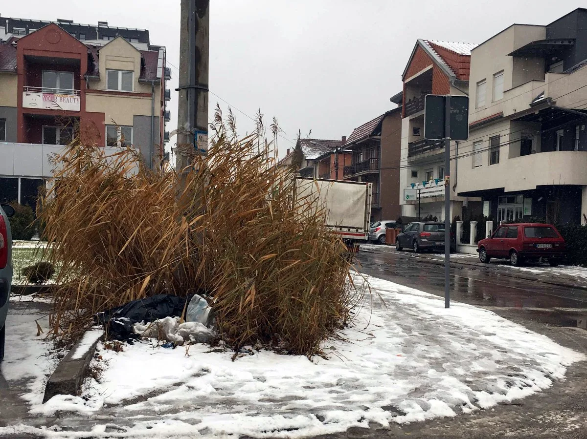 Trava koja raste oko bandere na uglu pomenutih ulica, požutela je zbog hladnih dana i godišnjeg doba, ali je i dalje prepreka vozačima.