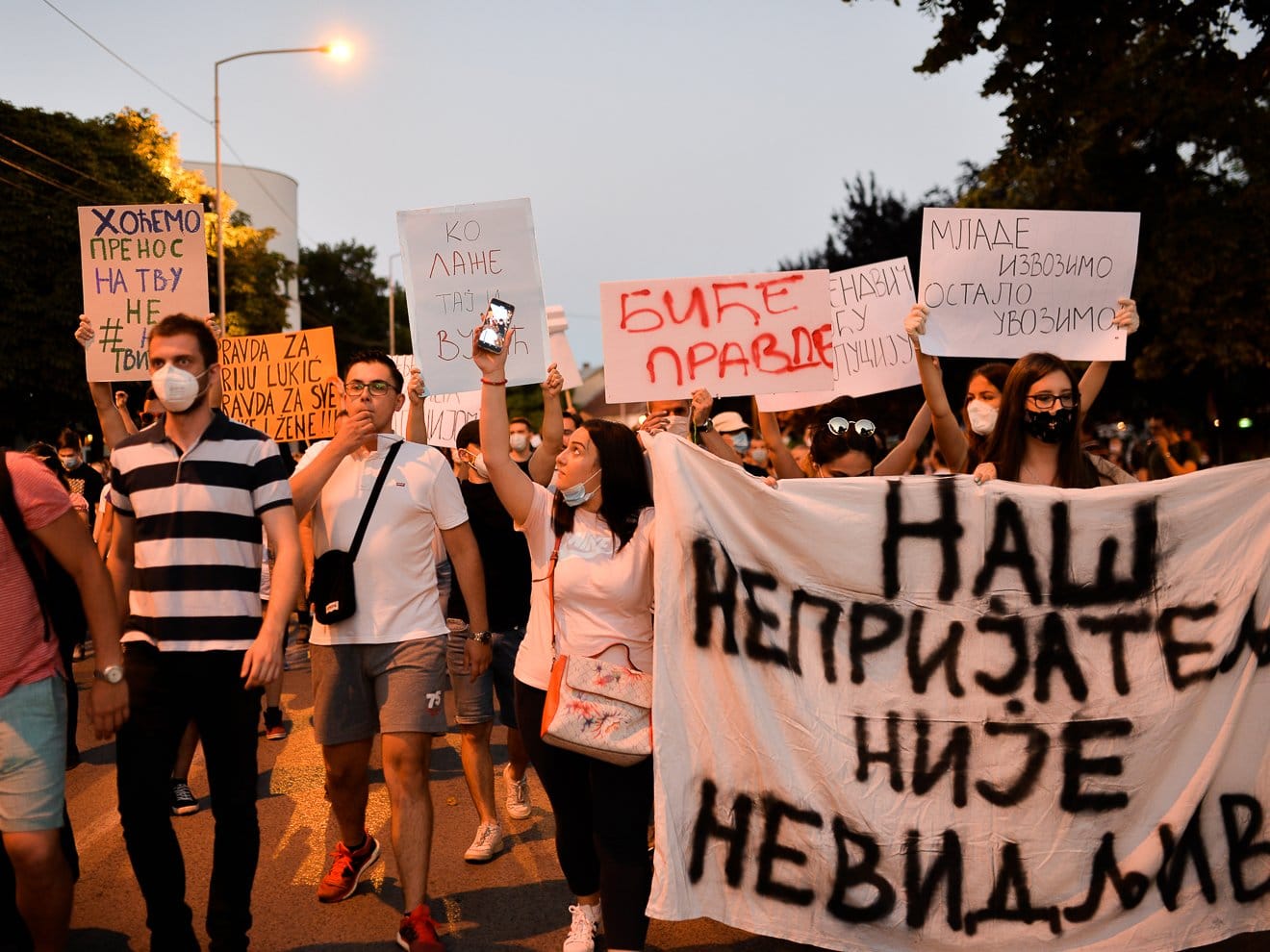 Uz brojne poruke na transparentima, poput „Burek be, a ne sendvič“, „Za slobodu izbora“, „Biće pravde“, „Mlade izvozimo, ostalo uvozimo“, Nišlije su i sinoć prošetale gradom. Protest je bio miran i bez incidenata, ali se deo grupe ponovo odvojio iz mase i otišao do prostorija Srpske napredne stranke, jedinog objekta koji tokom protesta čuva policija. Kako je proteklo treće veče protesta možete videti u galeriji foto-reportera Vanje Kesera.