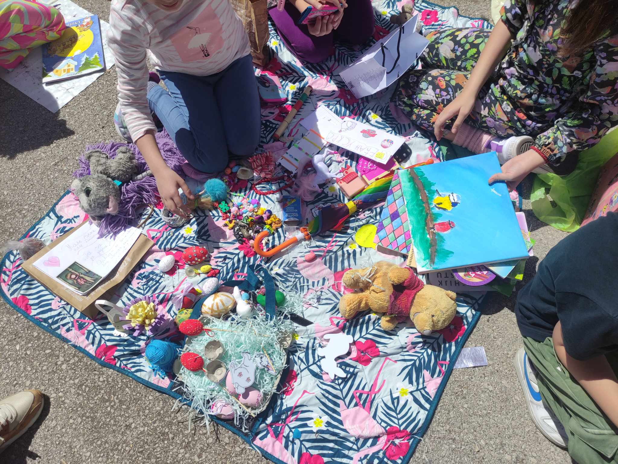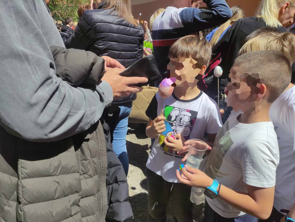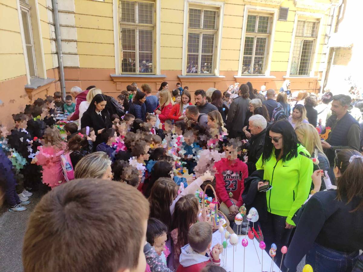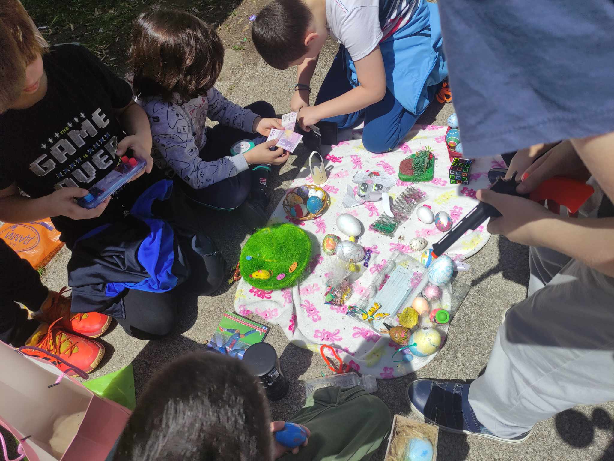 Tačno u podne dvorište Voždove škole bilo je puno i šareno, kao korpa uskršnjih jaja.Učenici mlađih razreda i predškolci spremali su prethodnih dana svoju „robu“, a na tezgama koje su bile klupe ili prostirka, radili su najmlađi i najslađi prodavci. Oni kojima je teško reći „ne“.