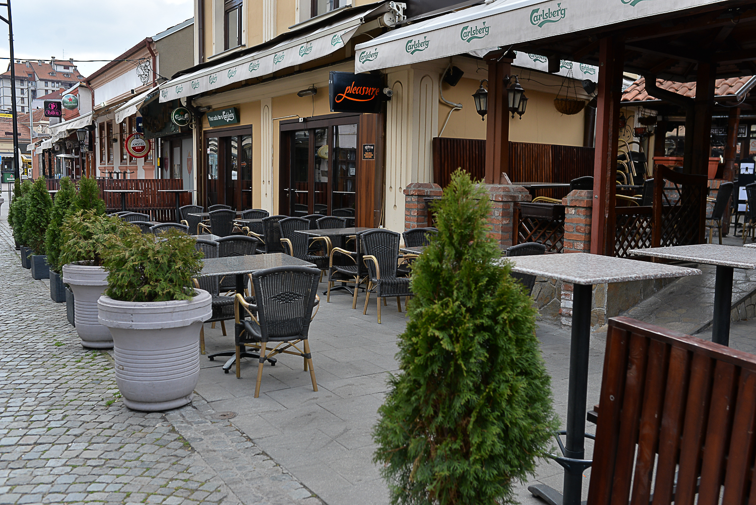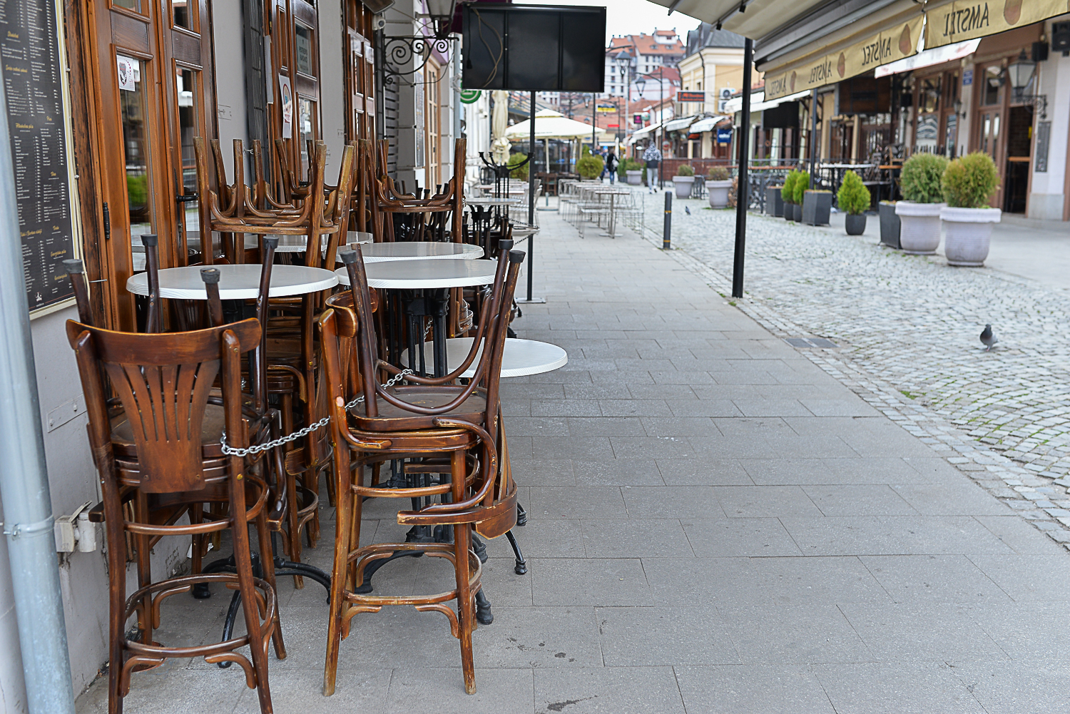 U podne su stupile na snagu nove mere protiv širenja korone, a najuočljivije u Nišu jesu zaključani kafići koji neće moći da rade do ponedeljka. Napolju je hladno pa nema mnogo ljudi ni na ulicama, a jedino gde građani mogu ovog vikenda su prodavnice hrane i apoteke, kao i na zakazanu vakcinaciju ili kod lekara.