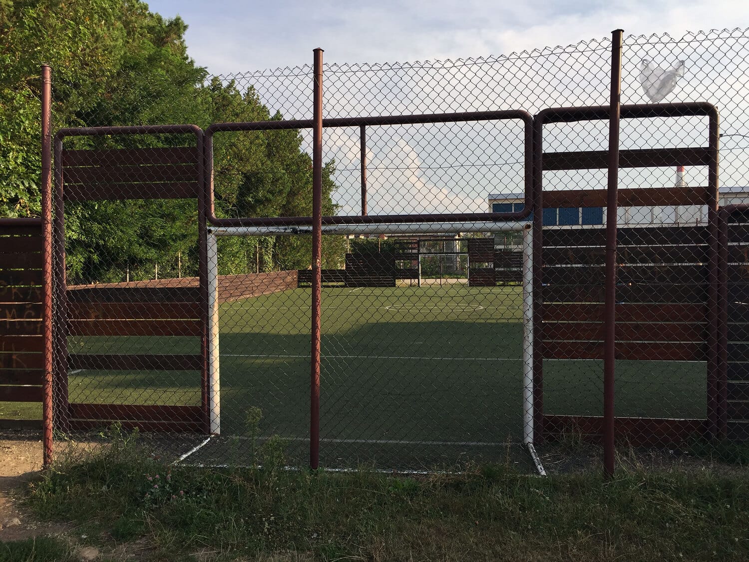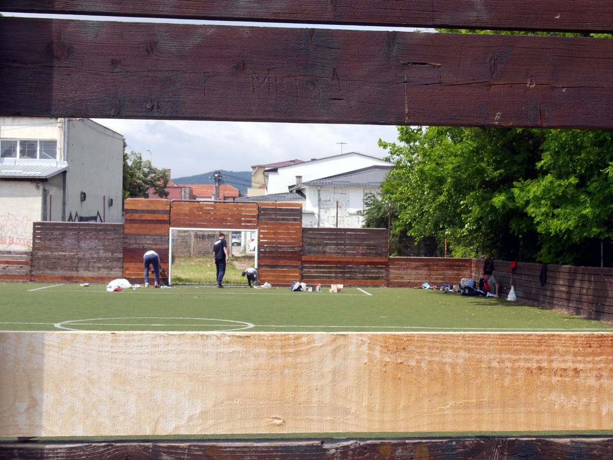 Poslednjih godina na terenu sa veštačkom travom, na daščanoj ogradi pojavile su se rupe, a mnogi zarđali šrafovi su štrčali. Pored toga što su na mnogim mestima nedostajale, pojedine daske su bile tako polomljene da su nekog mogle ozbiljno i da povrede.Kako kažu oni koji su učestvovali u obnovi terena i koji se redovno ovde rekreiraju, iako je teren već dugo u lošem stanju, niko od nadležnih nije reagovao, pa su zato rešli da uzmu stvar u svoje ruke. O svojoj akciji su obavestili novinare, ali ne i nadležne.