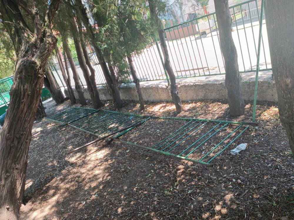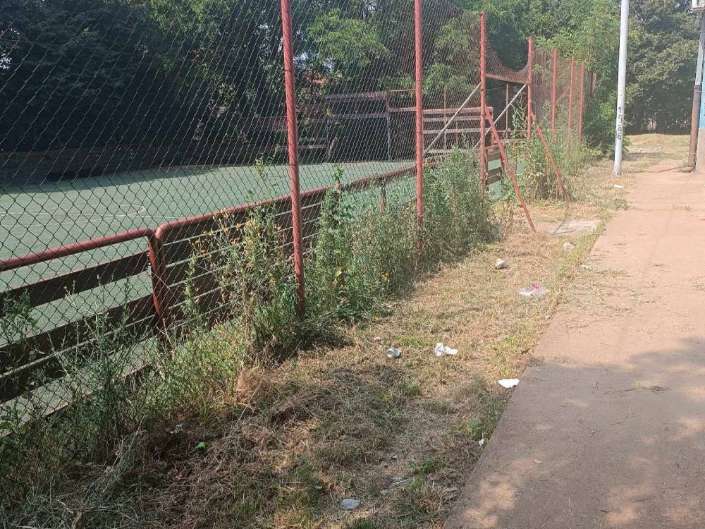 Dvorište Specijalne škole “Bubanj“ nepokošeno, rastinje otišlo i preko ograde.