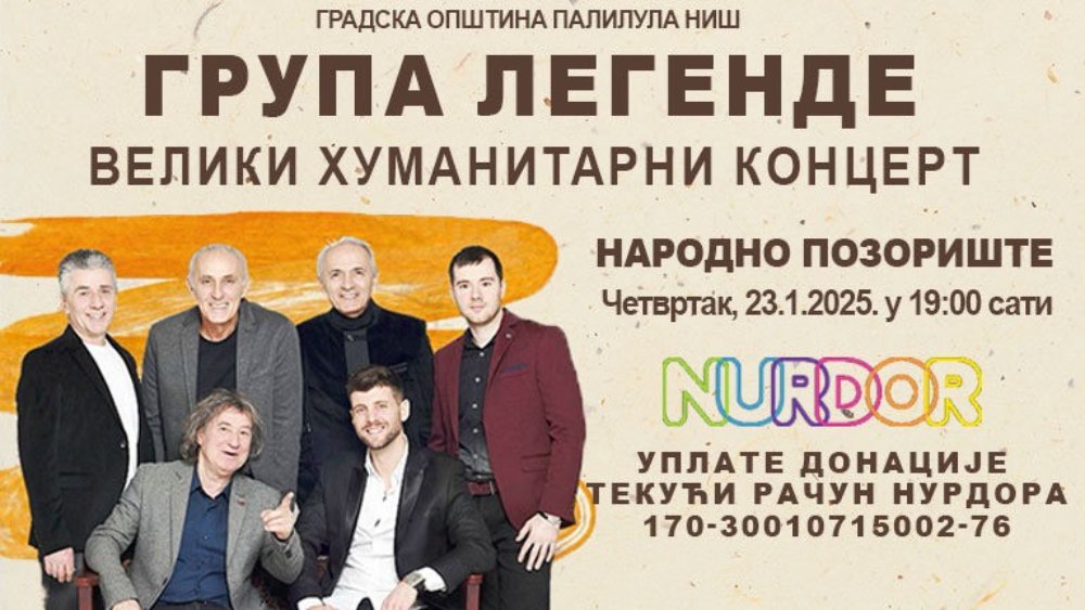 Humanitarni koncert grupe Legende održaće se u četvrtak, 23. januara od 19 sati u Narodnom pozorištu u Nišu, a sav prihod od ulaznica biće usmeren Nacionalnom udruženja roditelja dece obolele od raka.