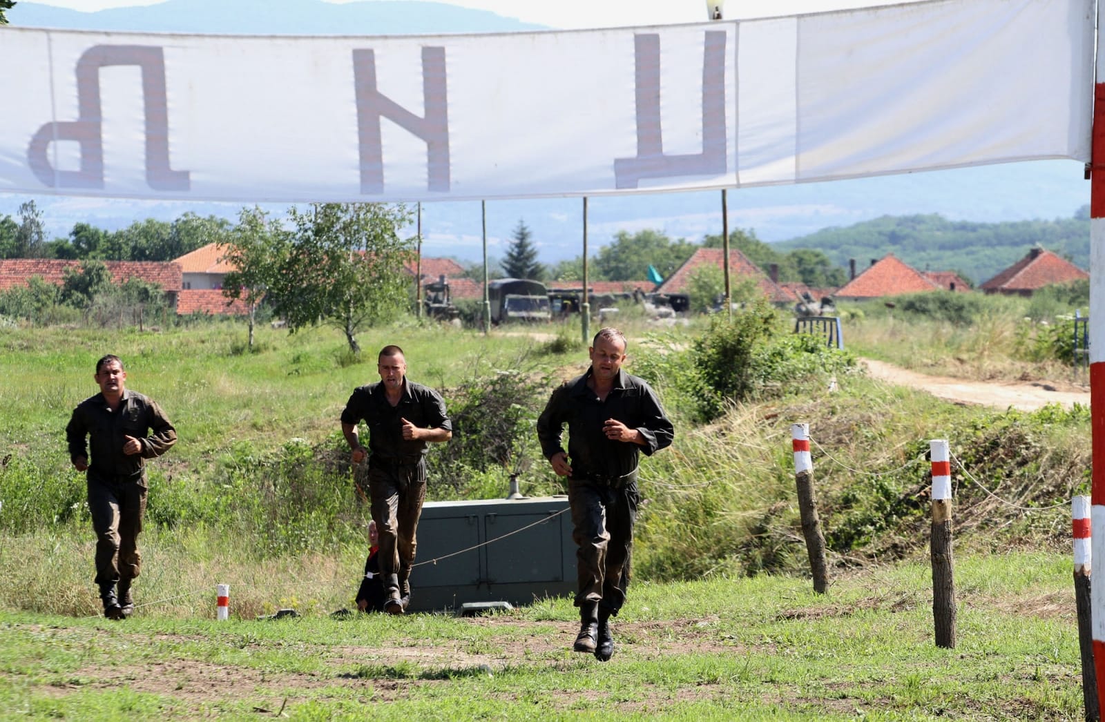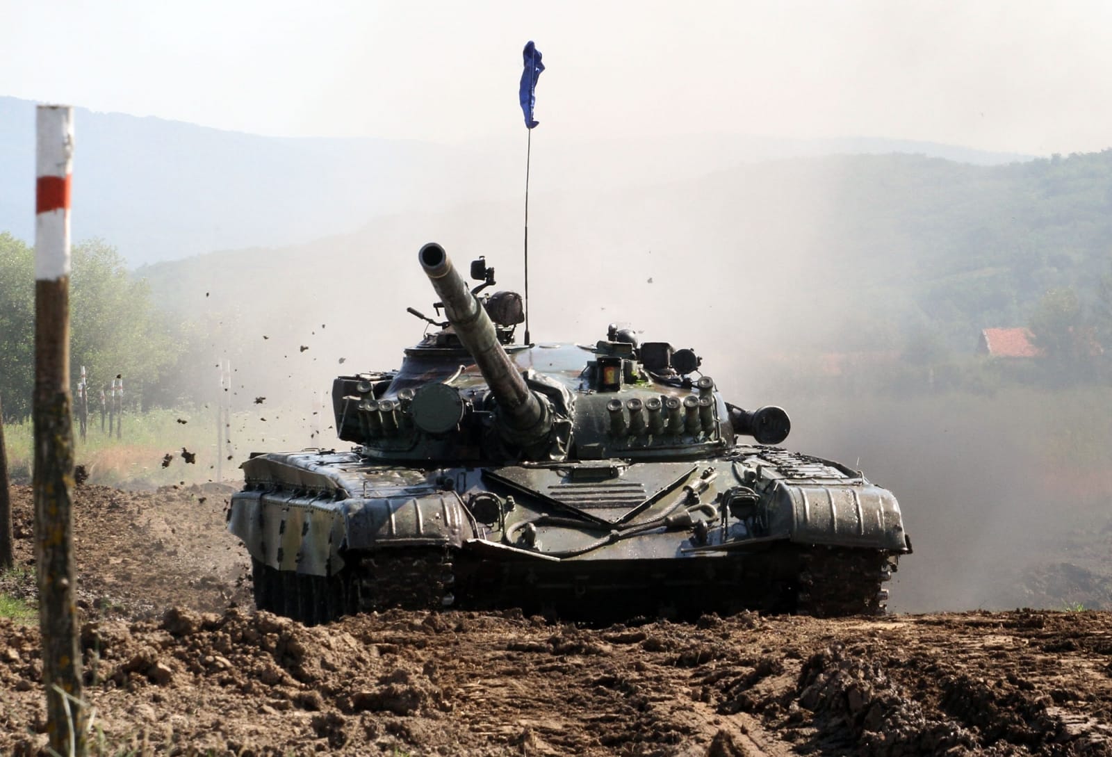 Osam najboljih tenkovskih posada iz novosadske, kraljevačke, vranjske i niške brigade kopnene vojske na poligonu „Međa“ kod Leskovca vežba za učešće na „Tenkovskom biatlonu“ u Rusiji.