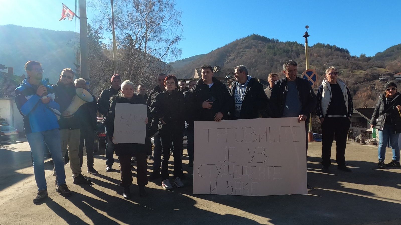 Nekolicina stanovnika male opštine na jugu Srbije, koja broji nešto više od 4.000 stanovnika, okupila se danas po prvi put kako bi javno iskazala podršku studentima.