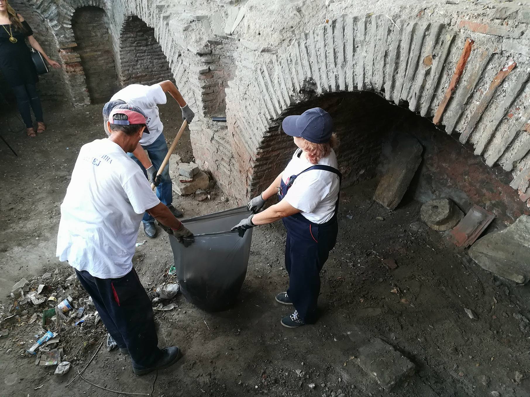 Plastične flaše, kese i drugo smeće koje je prekrivalo unutrašnjost ranohrišćanske bazilike u niškom naselju Jagodin-mala očišćeno je, a radnici koji su sređivali ovo kulturno dobro kažu da su napunili čak 15 džakova đubretom.