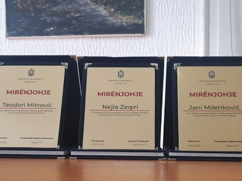 12 đaka generacije u isto toliko škola u Bujanovcu, u kojima se nastava odvija na oba jezika, a među kojima su učenici i srpske i albanske nacionalnosti, dobili su po 20.000 dinara, a uz novac dobili su i zahvalnice.