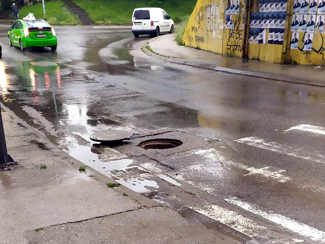 Iako celog dana pada kiša, a ovo mesto je uvek problematično, jer se tu sakuplja velika količina vode, u Vodovodu kažu da je malo verovatno da je voda izbacivala poklopac.