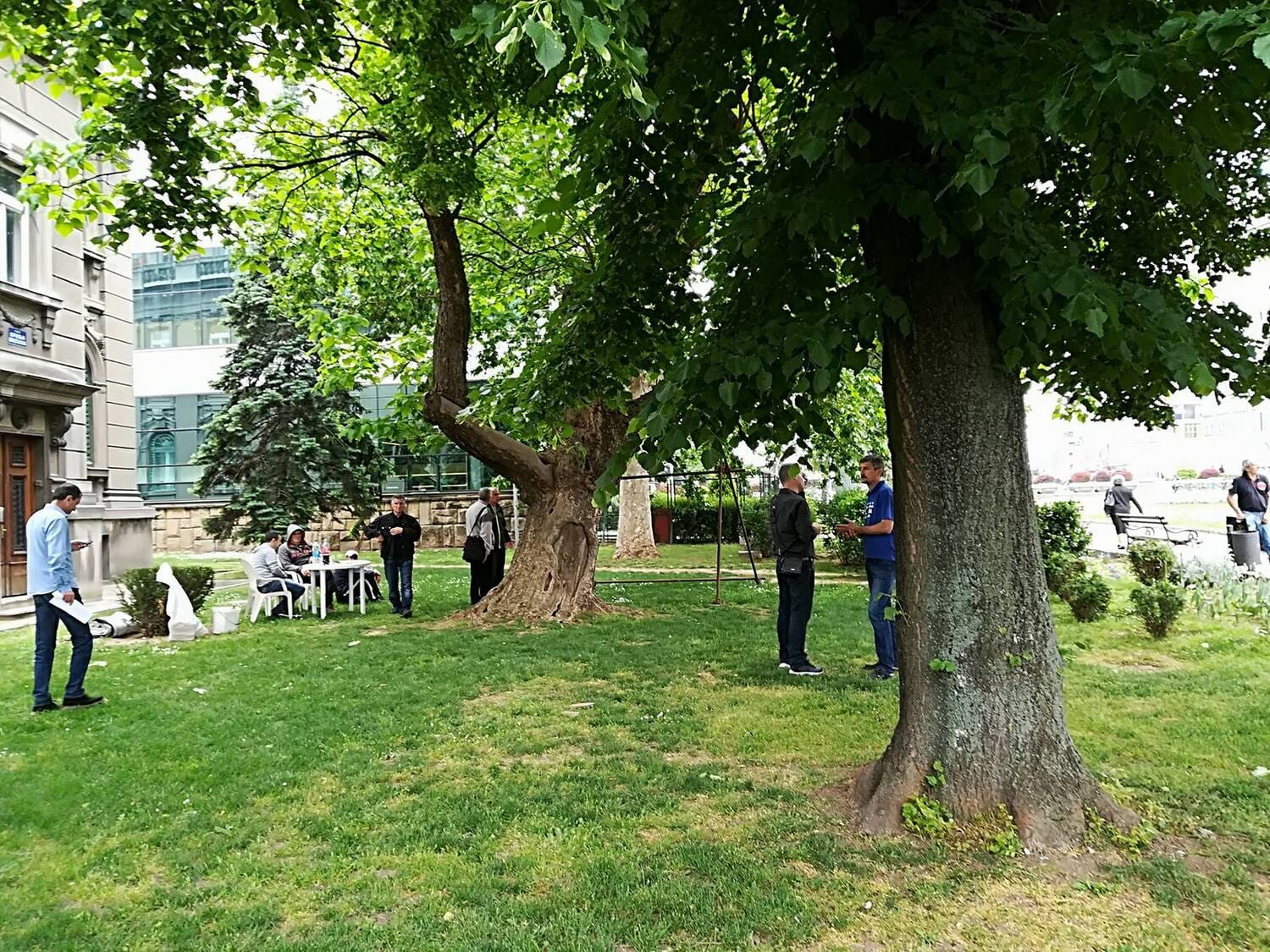 Načelnik Đorđević je zamolio prisutne da prekinu sa postavljanjem šatora. Kako je objasnio, borci nemaju dozvolu da zauzmu javnu i zelenu površinu, te šator ne smeju da postave na tom mestu.