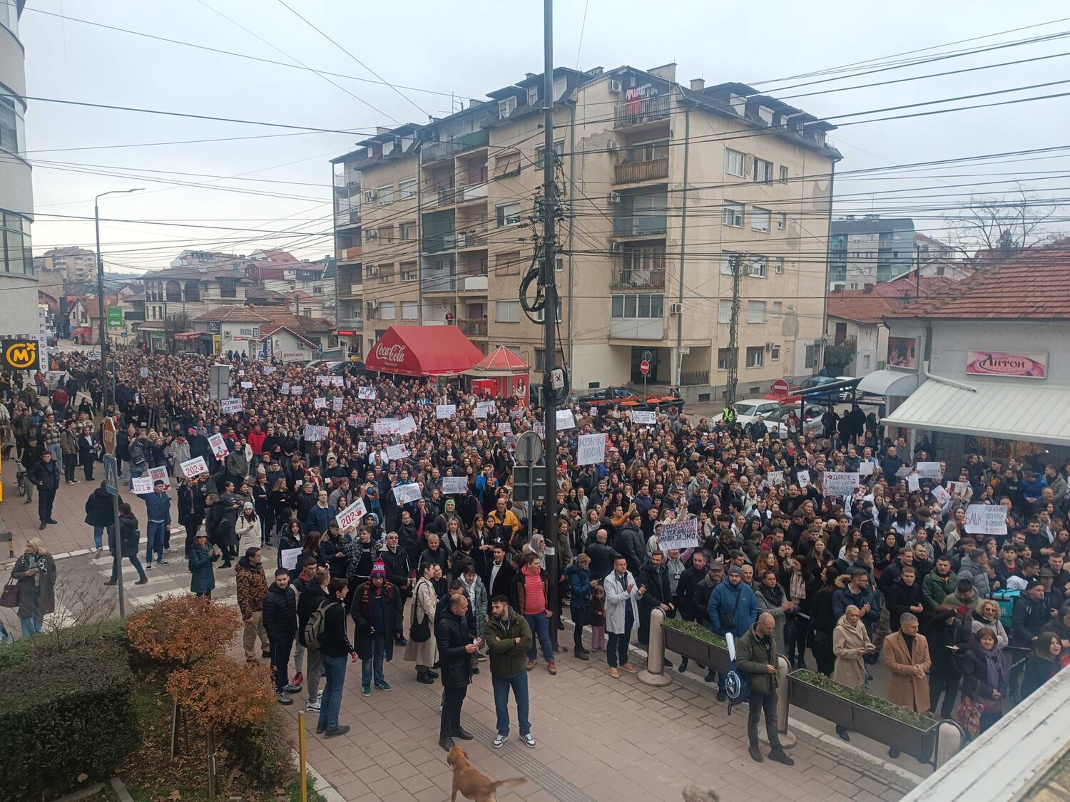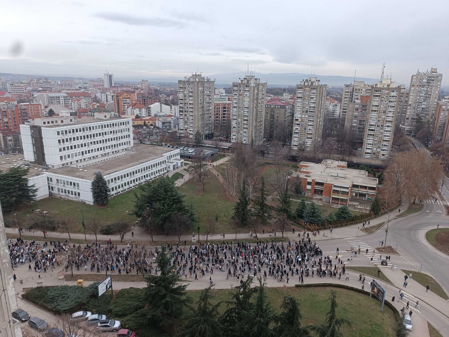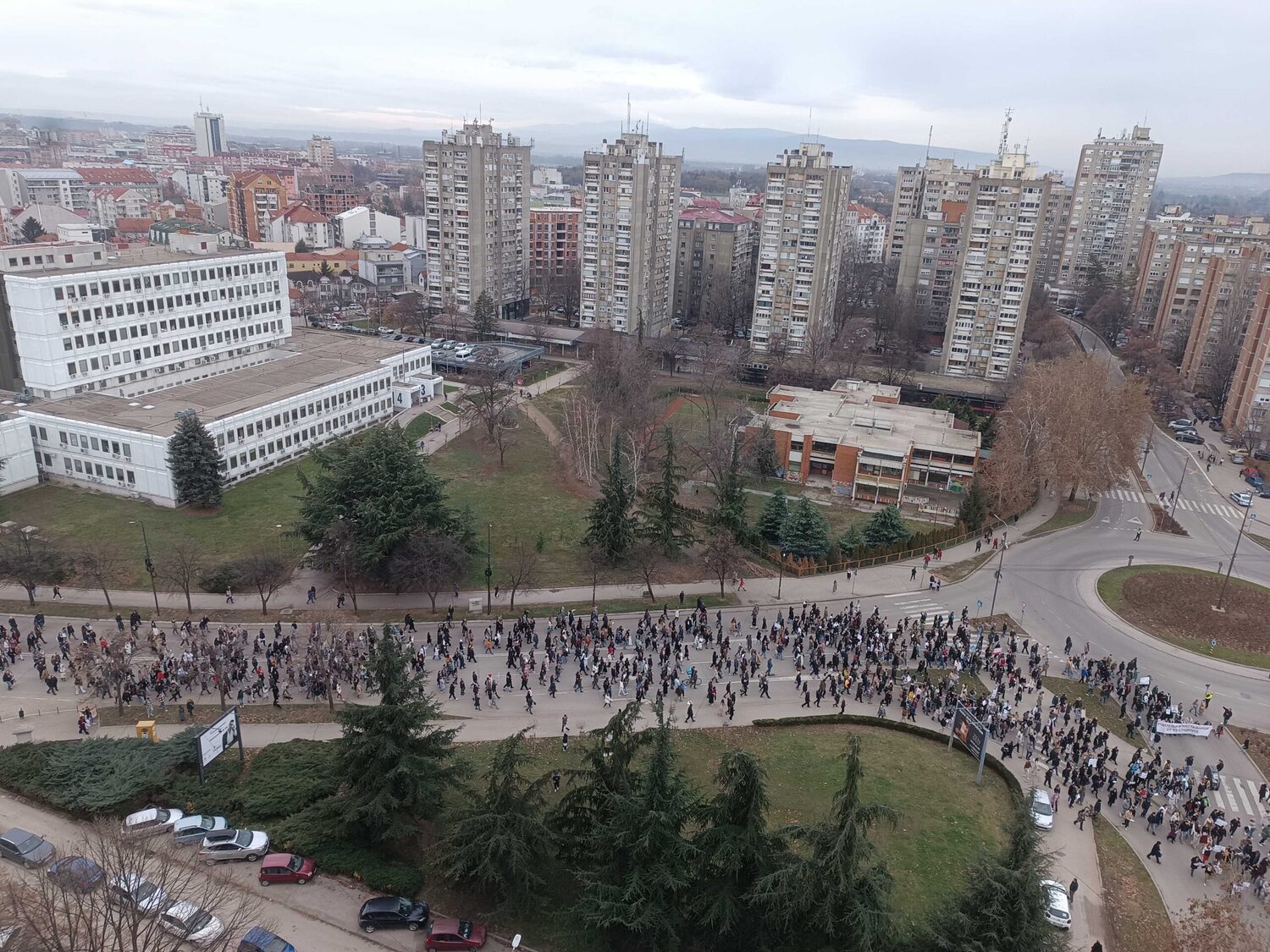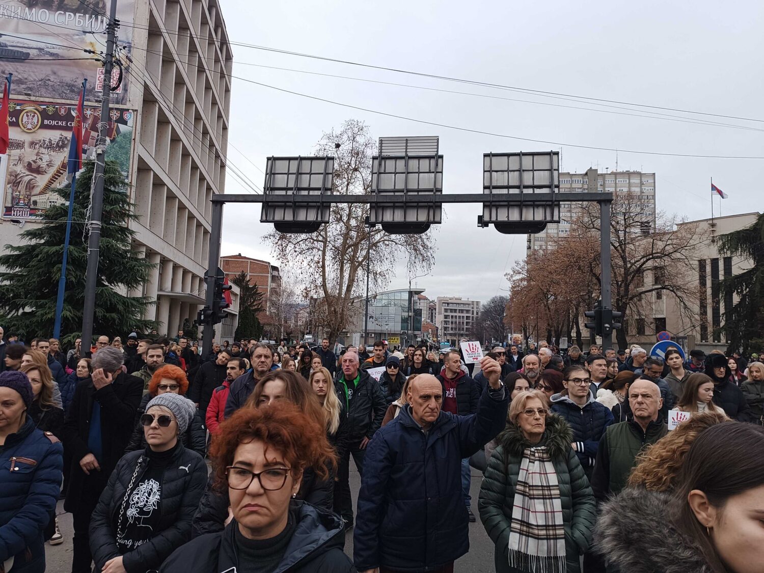 Blokada raskrsnice kod Osnovnog suda trajala je danas od 11:52 do 12:07, a onda su brojni okupljeni krenuli u protestnu šetnju Bulevarom dr Zorana Đinđića do prostorija Srpske napredne stranke, gde si zalepili otiske krvavih ruku.„Učitelji i nastavnici su uz studente“, „Nemamo mi šta da se skupljamo, mi smo se ovde raširili. I tako ćemo se širiti i širiti“, „Bora se bori“, „Korupcija ubija“, „Krivi smo mi koji smo ćutali“, „Budimo realni, tražimo ostavke“, „Ne bi bilo ove krvi da je bilo sve po zakonu“, „Korupcija ubija“, „Mene sve rane moga roda bole“ – neki su od transparenata koje su okupljeni nosili ovog petka.
