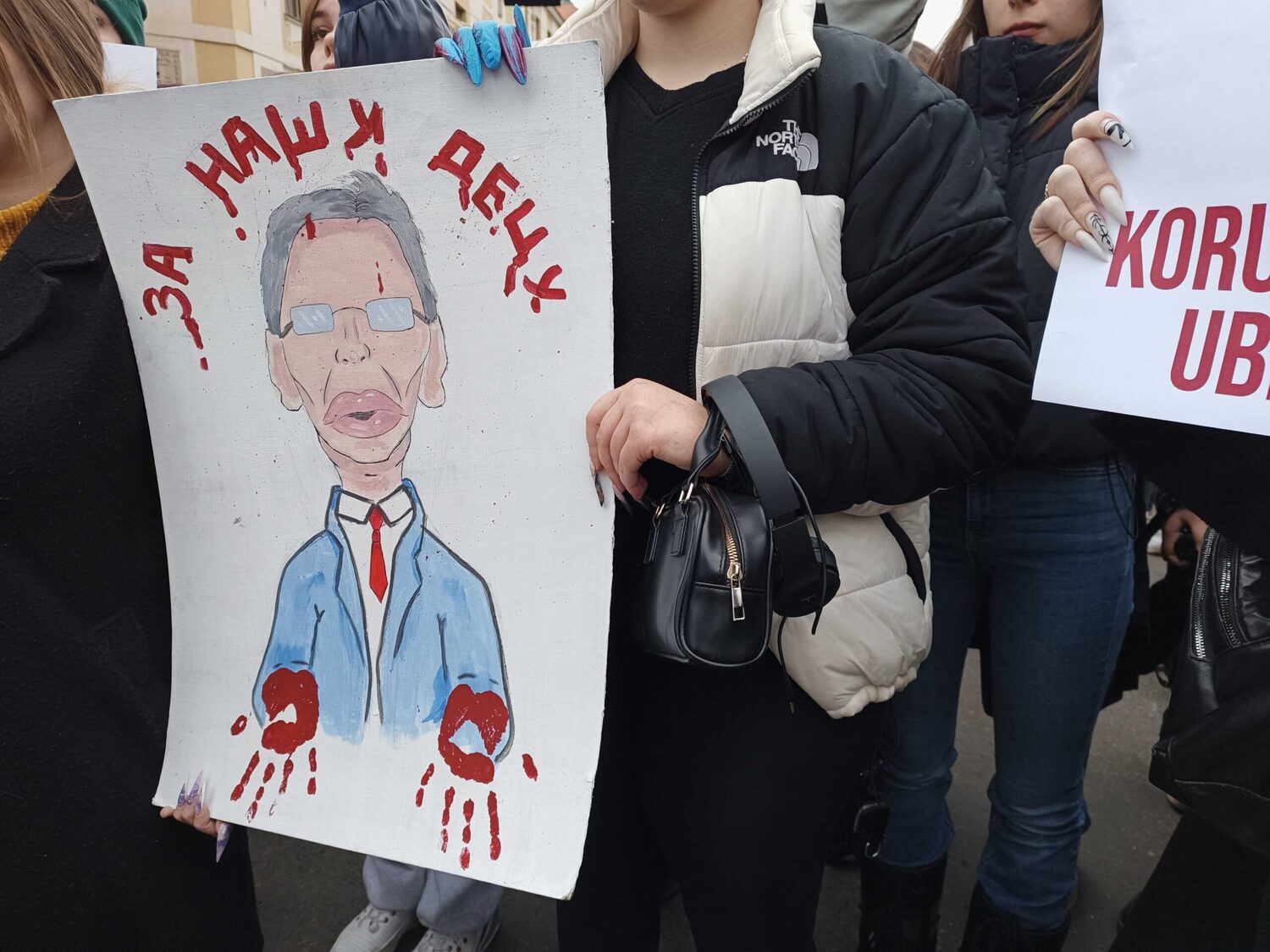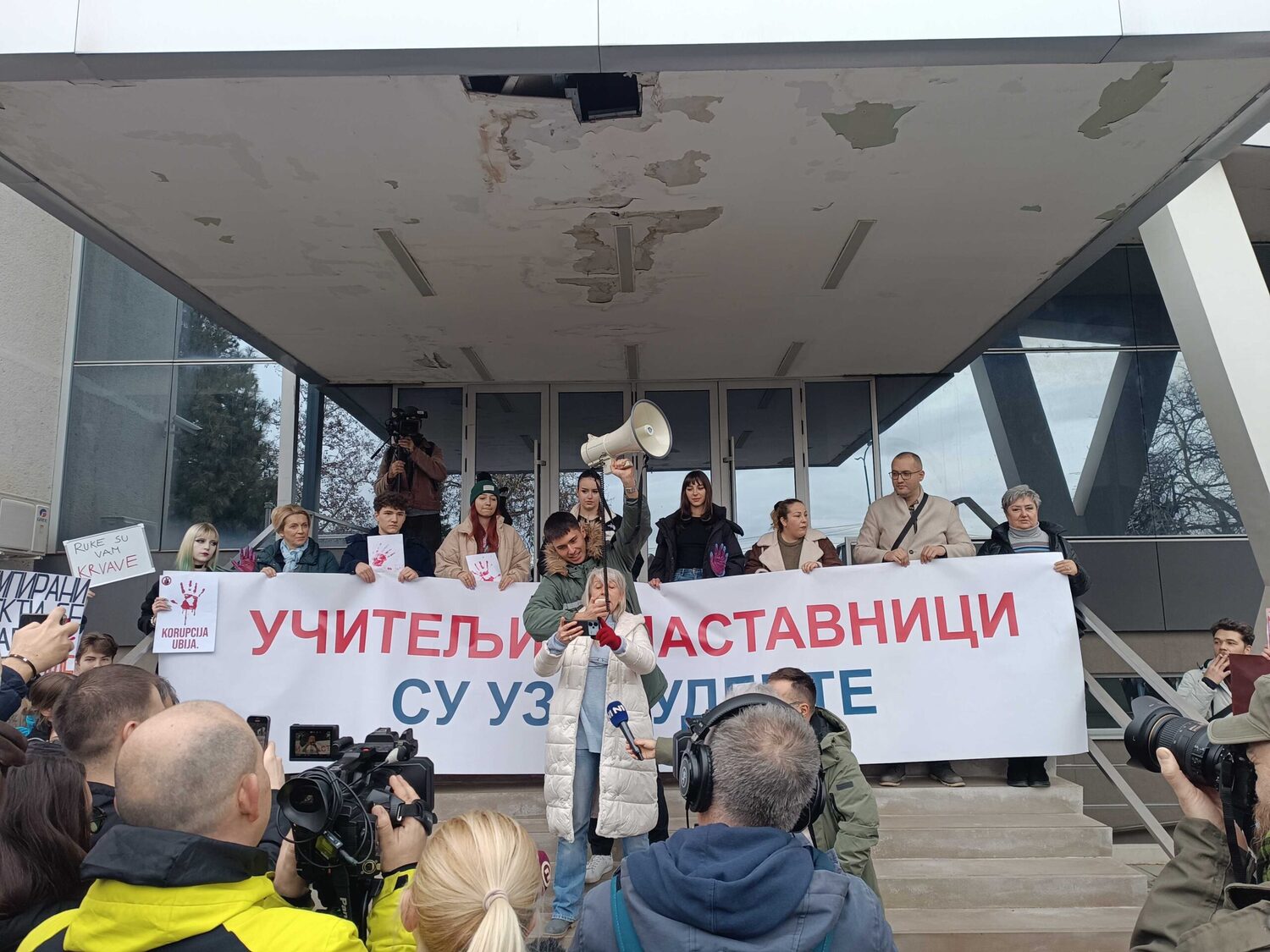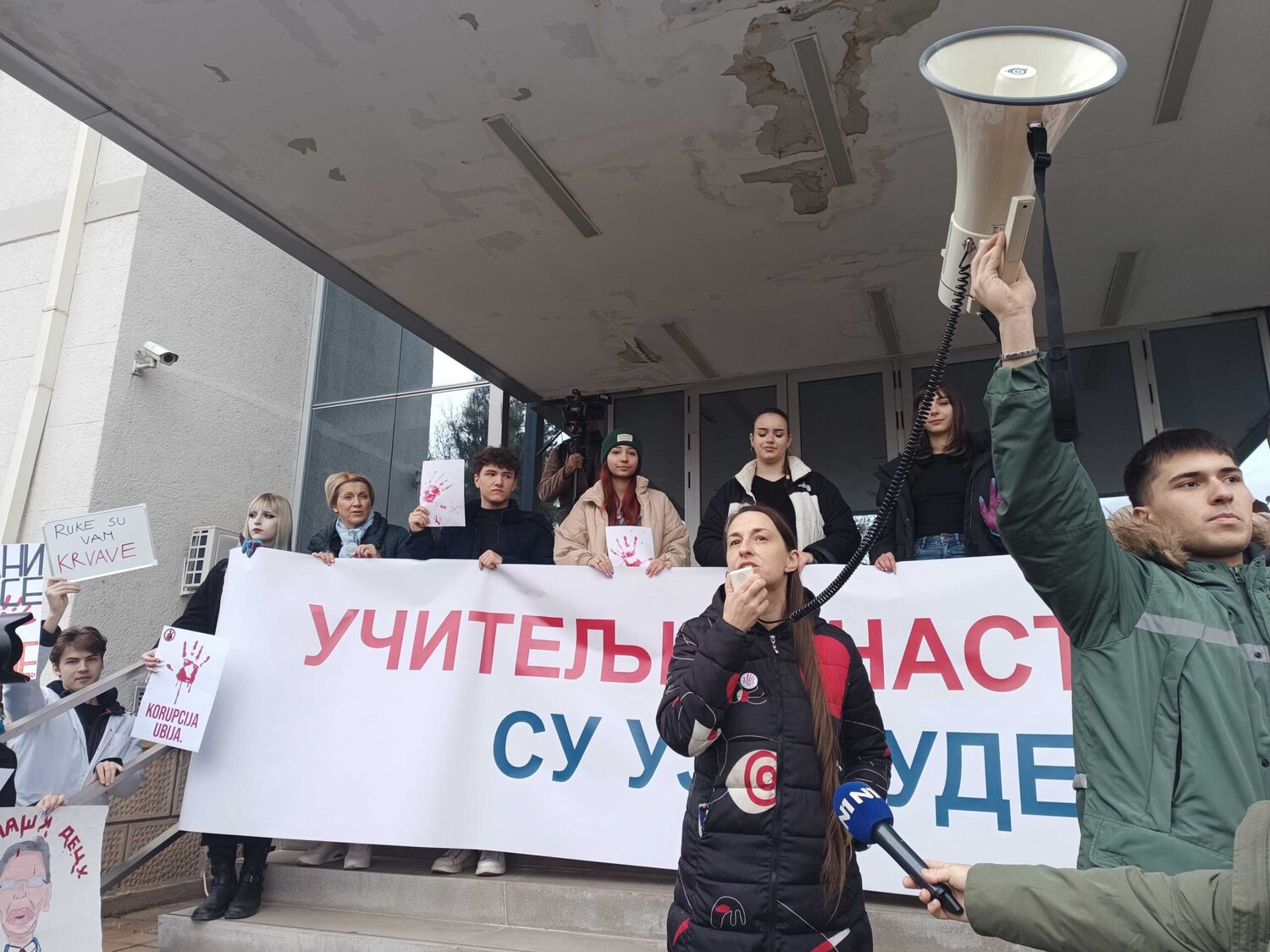 Ispred prostorija SNS-a uzvikivali su: „Lopovi, lopovi“, „Vi ste korov naše države“ i „Ruke su vam krvave“.
