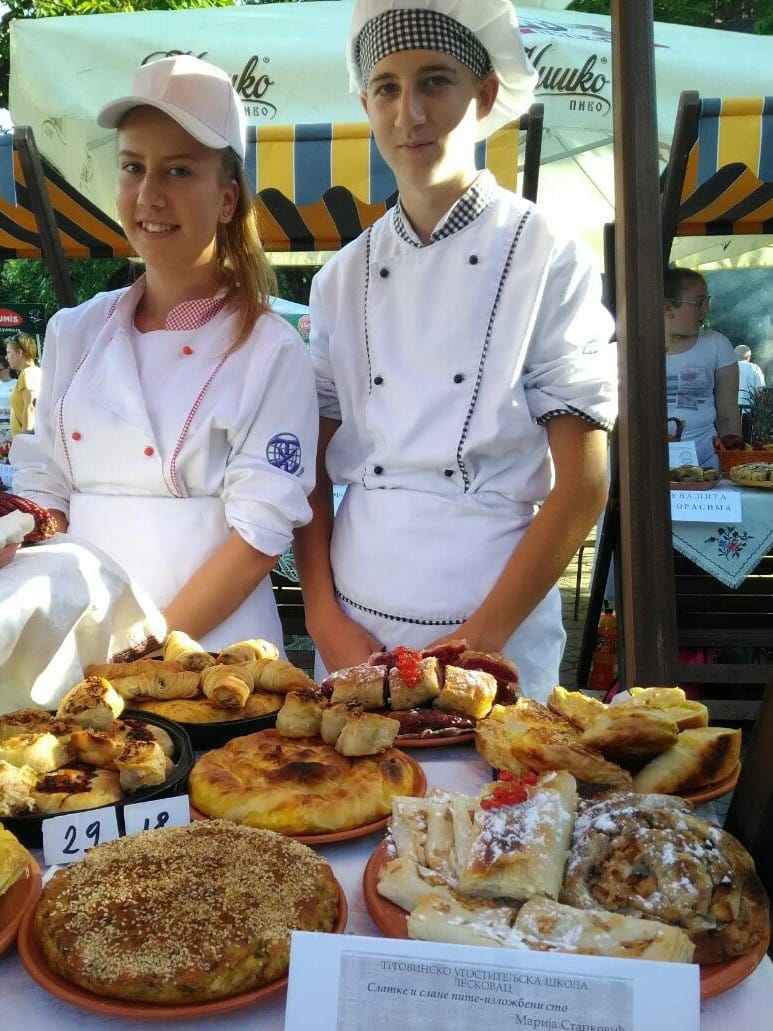 Moderna jela od pilećeg, ribljeg i svinjskog mesa, gibanice i pite, kao i slatkiše, spremali su ove godine učenici leskovačke Trgovinsko-ugostiteljske škole na 6. Međunarodnom gastro festivalu, sa kog su doneli čak 19 zlatnih medalja. Učenici ove škole najbolji su bili i u kategoriji takmičara do 18 godina, dok je drugo mesto pripalo takmičarima Ugostiteljsko-turističke škole iz Niša.