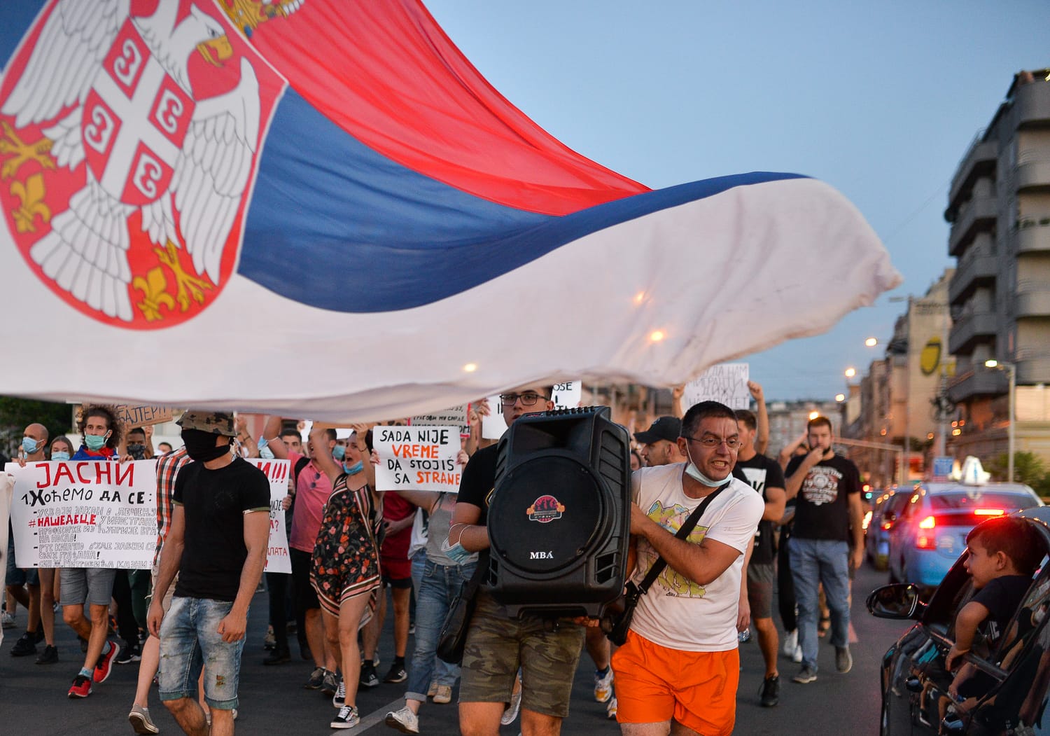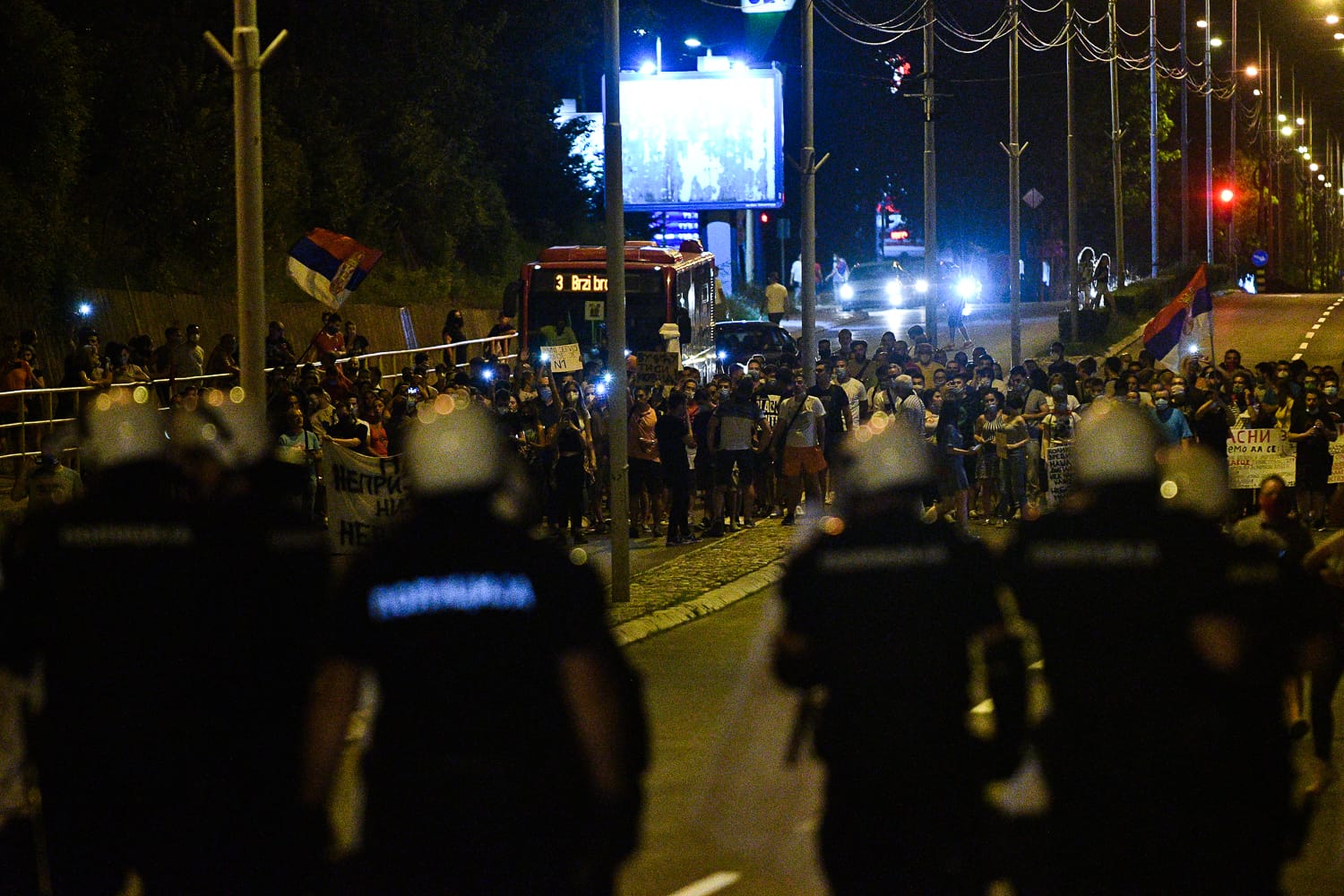 Vi ste naša policija, mi smo vaš narod. Svima nam je Vučić kovid. Spustite štitove! Uhapsite Vučića!