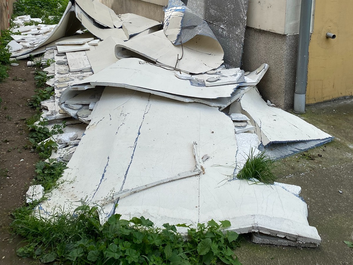 Deo fasade se sa zgrade početkom decembra obrušio, dobar deo izolacije se odvojio, a stanari su tada bili zahvalni što niko nije povređen. Nadali su se da će materijalnu štetu brzo rešiti, ali ni dva meseca nakon toga skoro se ništa nije promenilo – samo je postavljena crveno-bela traka.Ni do danas se ništa nije promenilo, pričaju stanari – delovi stiropora, mrežice za armiranje i završni sloj fasade padaju i ostaju na zelenilu između dve zgrade.Fasada od stirodura i dalje pada, smeće se raširilo svuda po parku u okolini. Ovo je postalo ruglo i đubrište. Nemam više mogućnosti i opcija koje bih mogao da primenim – žalilo se januara stanar.