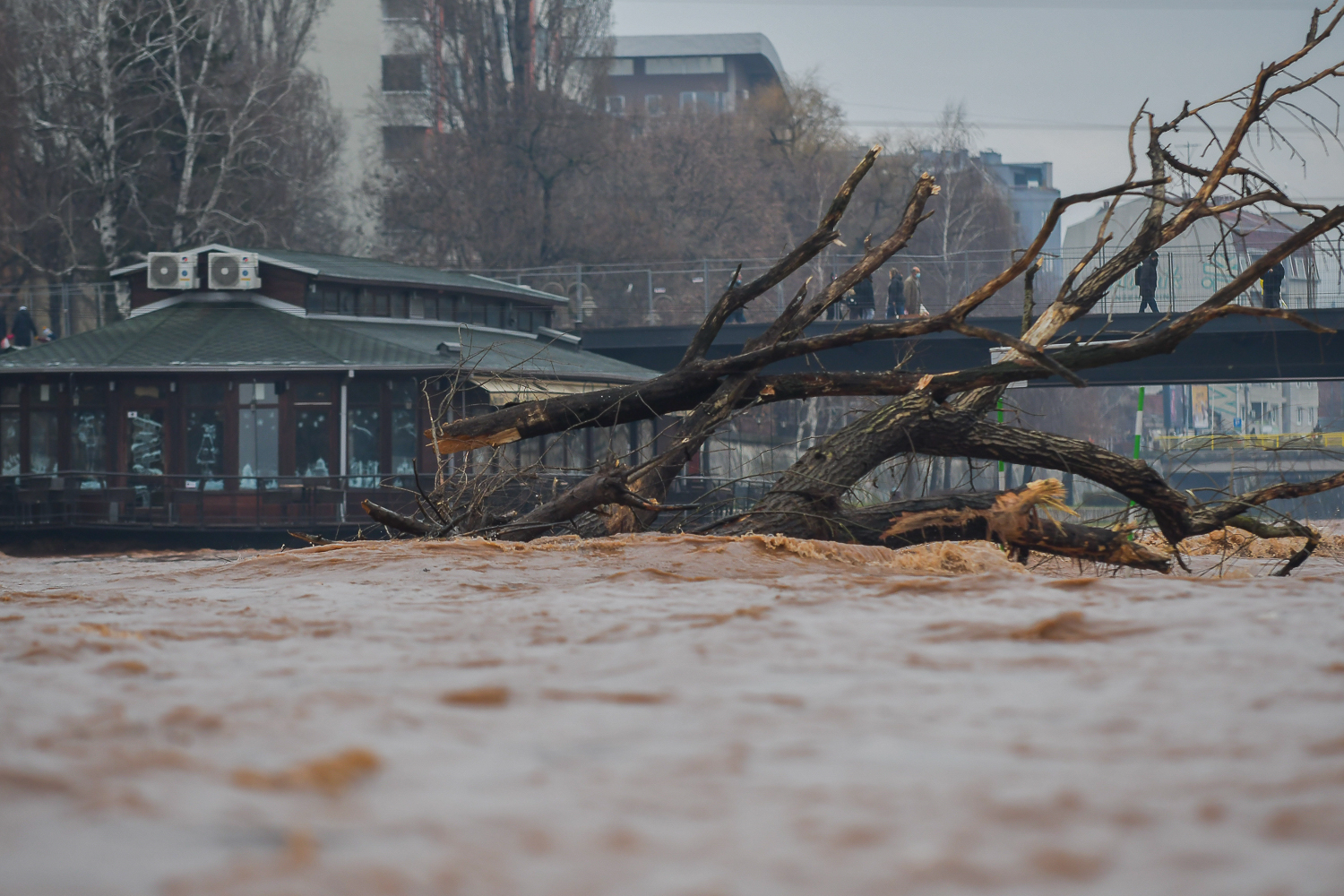 Zbog kiše koja je padala prethodnih dana i snega koji se topi, nadošla je i reka Nišava. Sa sobom je povukla drvo sa korenom i krošnjom, a građani kažu da ga je reka nosila sve dok nije udarilo u splav u blizini centra grada. Nedaleko odatle, na sredini korita Nišave, ostalo je zakačeno još jedno stablo.