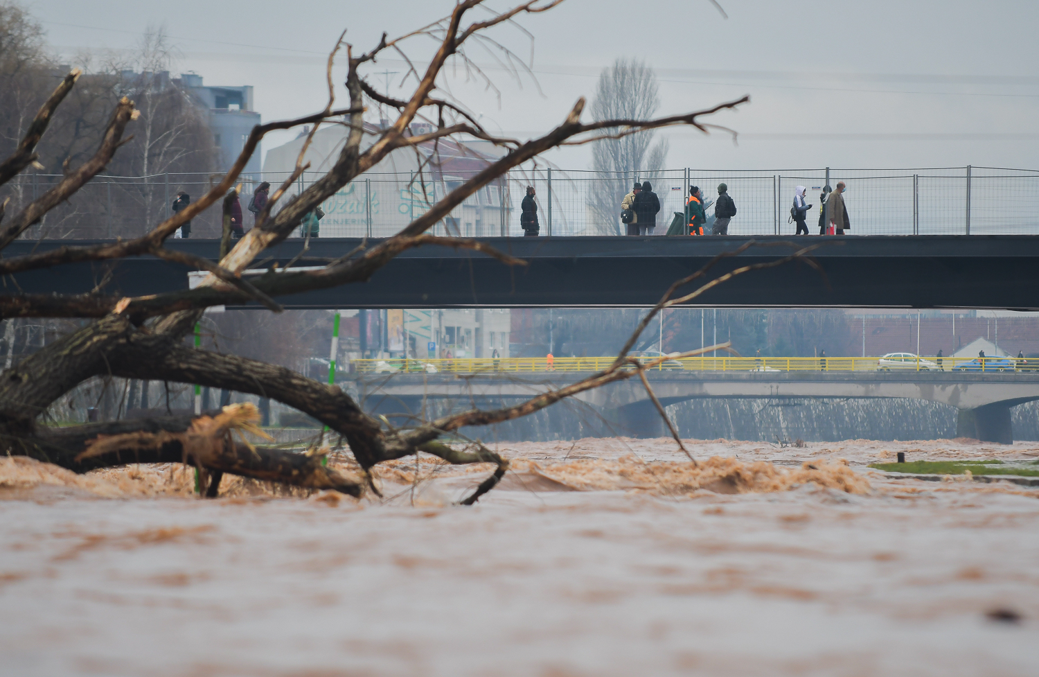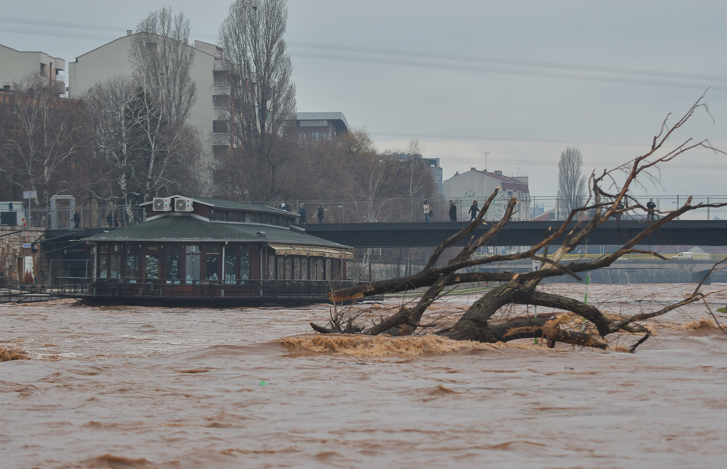 Preko mosta koji povezuje obalu i splav u jednom delu dana prelivala je reka.