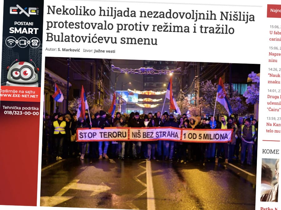 Čak 339 komentara ispod teksta “Nekoliko hiljada nezadovoljnih Nišlija protestovalo protiv režima i tražilo Bulatovićevu smenu” ostavili su čitaoci Južnih vesti.