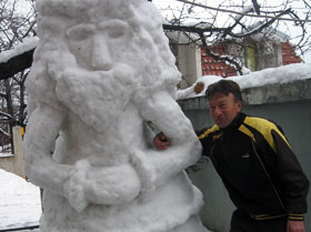 Dragan Antonov (55) iz Vranja napravio je u svom dvorištu skulpturu Deda Mraza od snega, visoku oko 3 metra i široku metar i po.