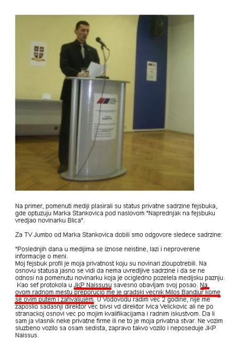 Nezadovoljan zbog pisanja o spornom finansiranju niške TV Džambo iz budžeta Vodovoda, šef protokola tog javnog preduzeća Marko Stanković preko Fejsbuka je izneo uvrede na račun Ivane Anđelković.