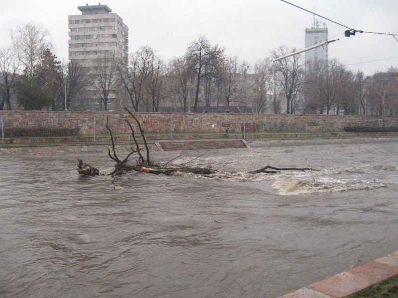 Nadošla Nišava u centar Niša donela je stablo dugo je oko 4 metra koje se preprečilo se u reci između amfiteatra na keju i restorana “Gusar”.